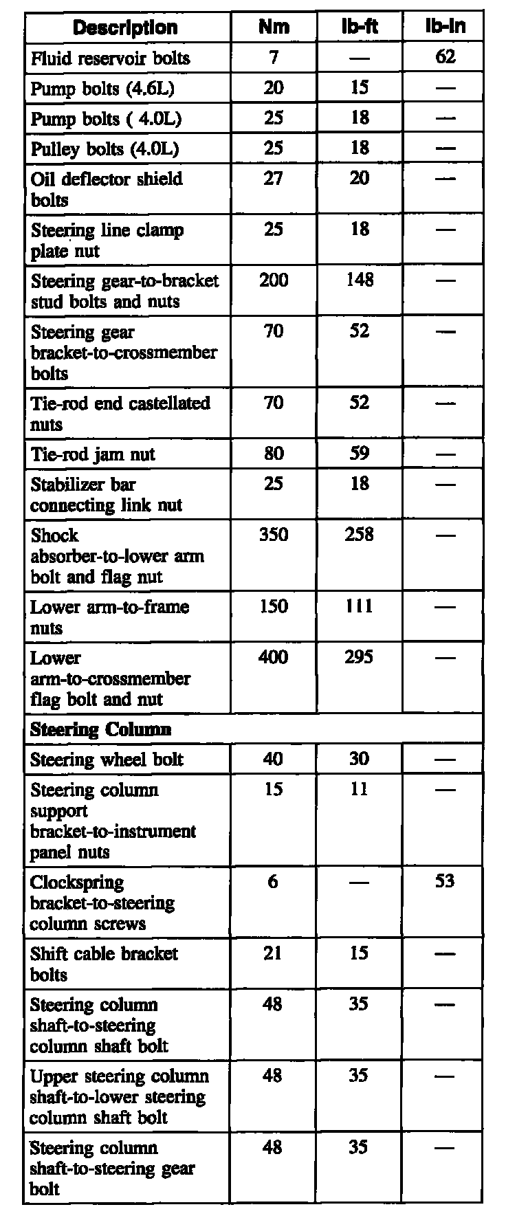 Torque Specifications