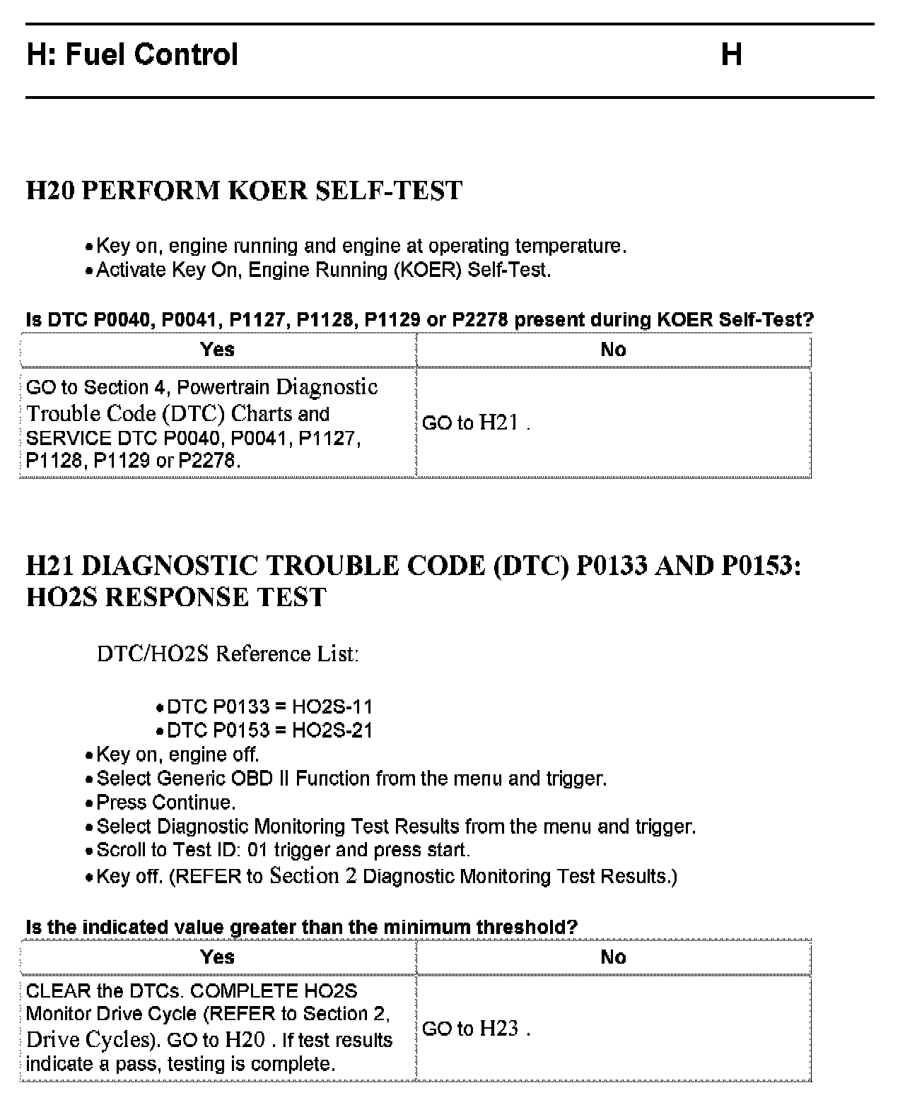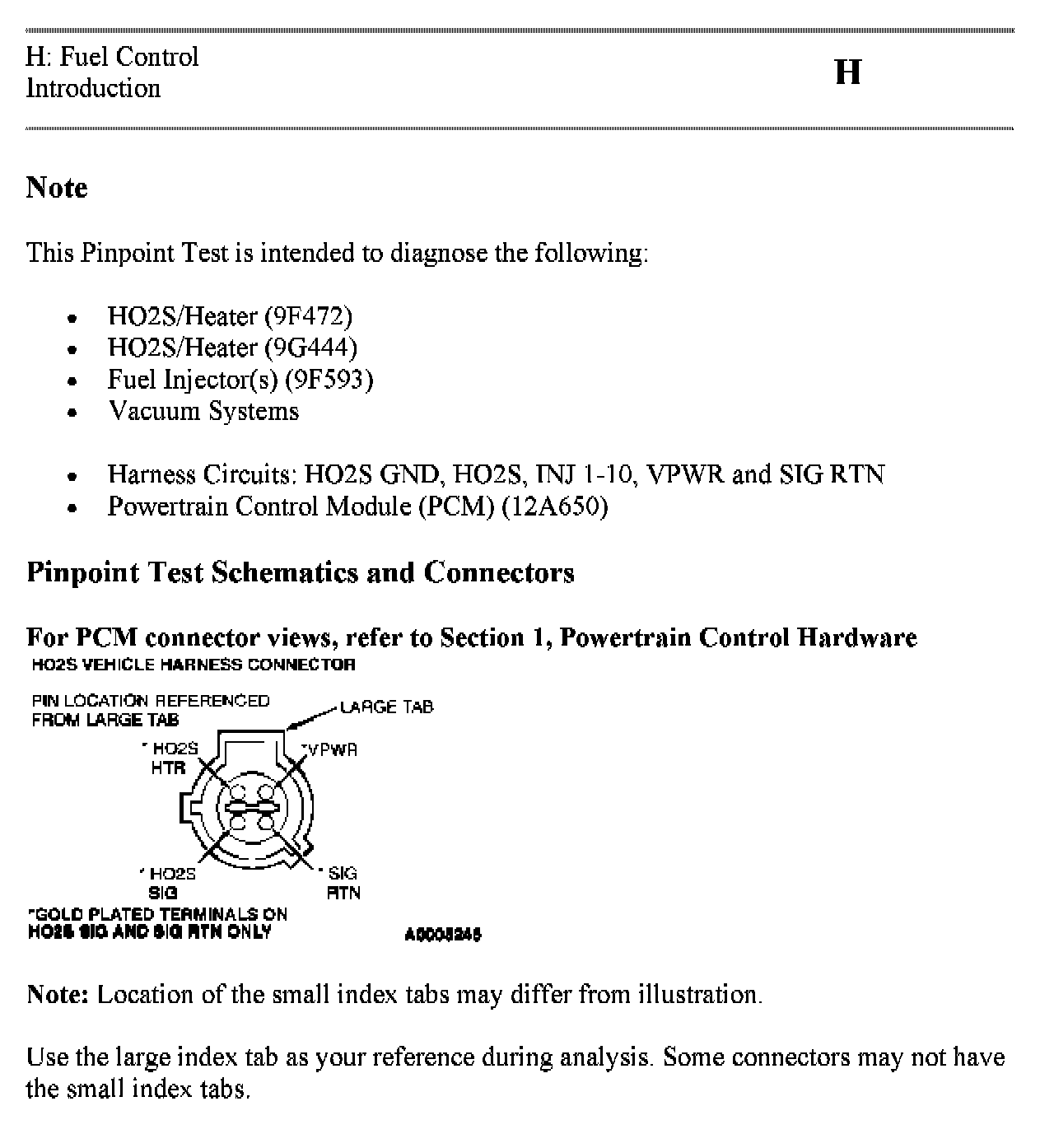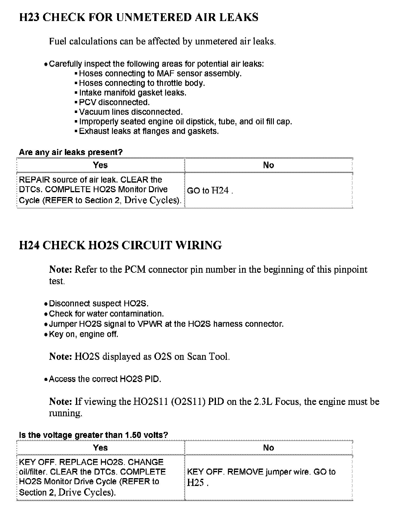 Home >> Ford >> 2003 >> Focus L4-2.3L VIN Z >> Repair and Diagnosis >> Powertrain Management >> Computers and Control Systems >> Testing and Inspection >> Pinpoint Tests >> Test H: Fuel Control