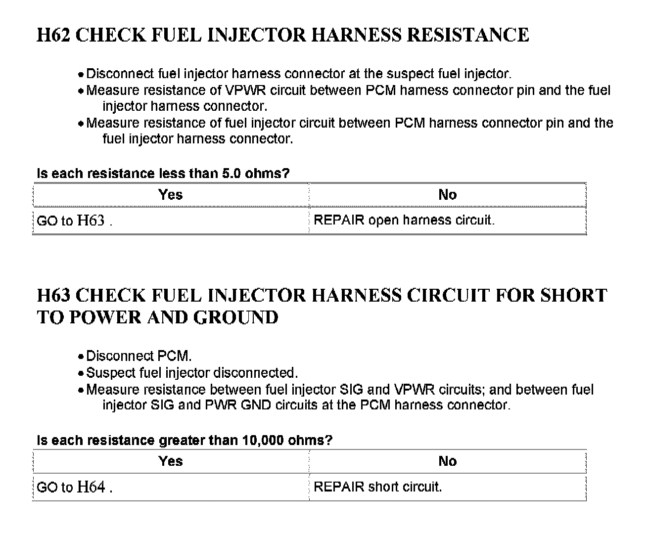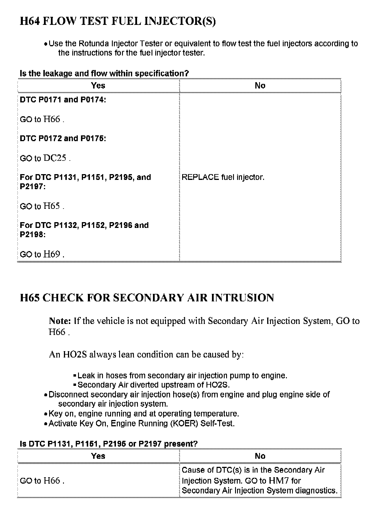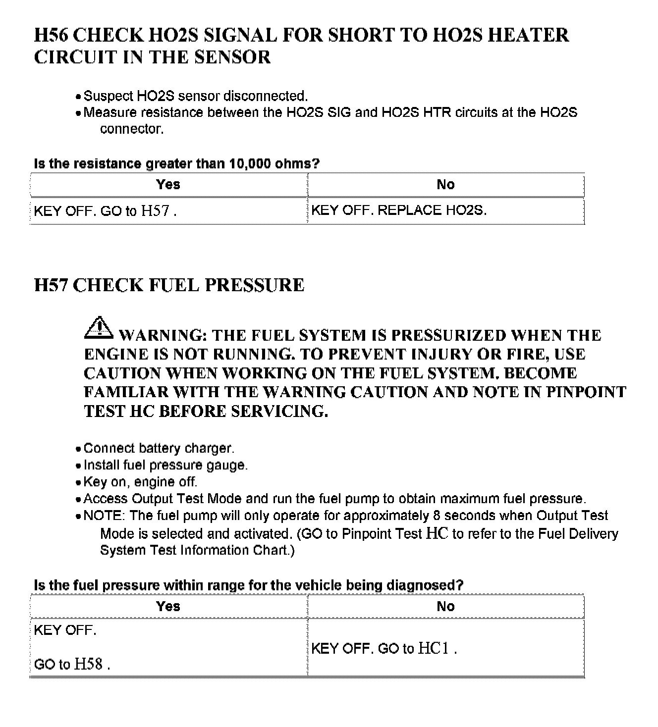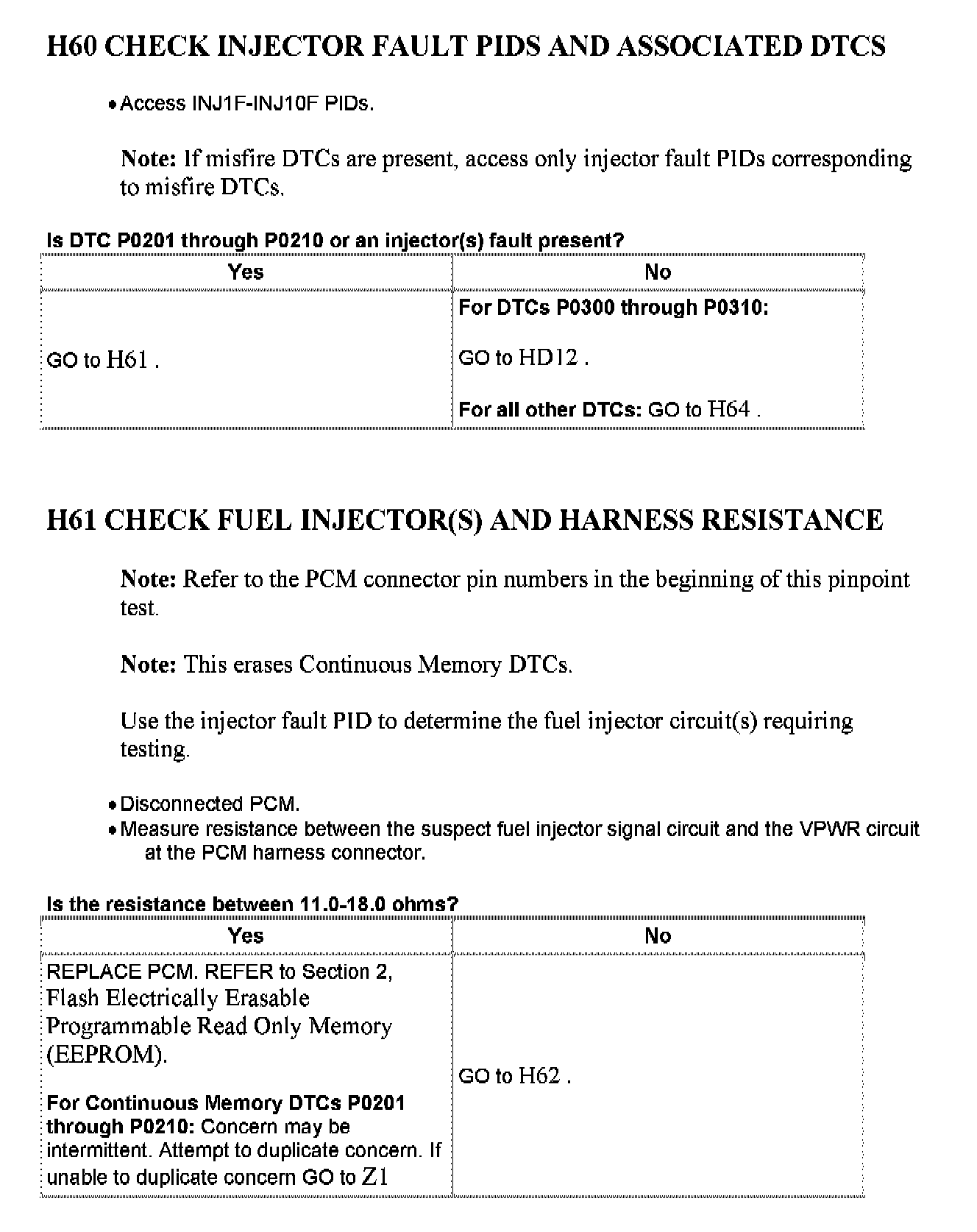 Home >> Ford >> 2003 >> Focus L4-2.3L VIN Z >> Repair and Diagnosis >> Powertrain Management >> Computers and Control Systems >> Testing and Inspection >> Pinpoint Tests >> Test H: Fuel Control