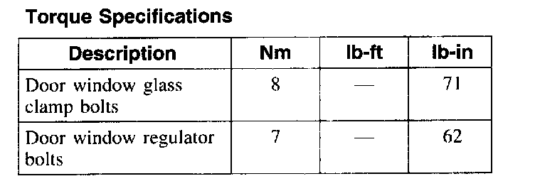 Torque Specifications: