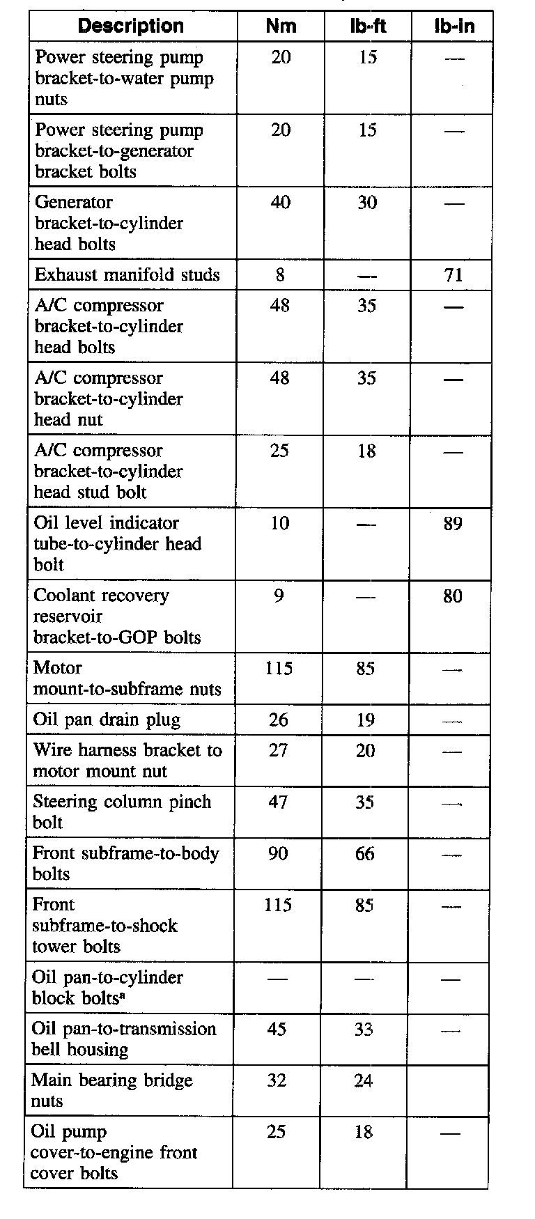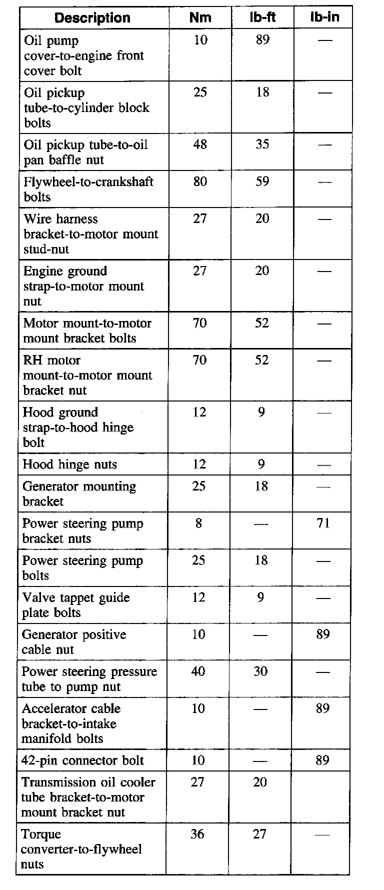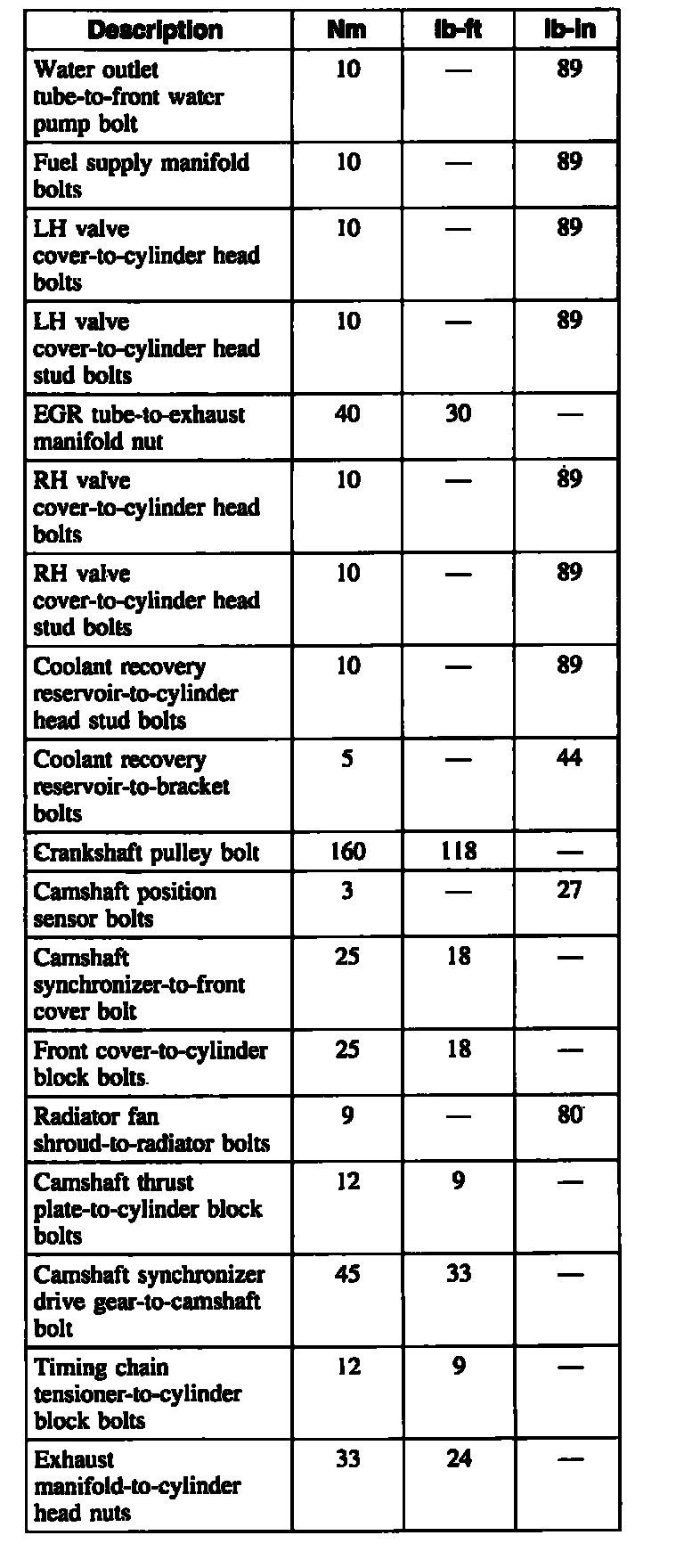Torque Specifications