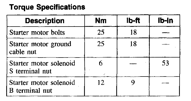 Torque Specifications: