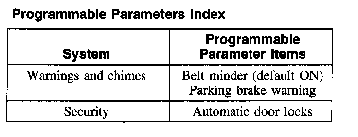 Programmable Parameters Index: