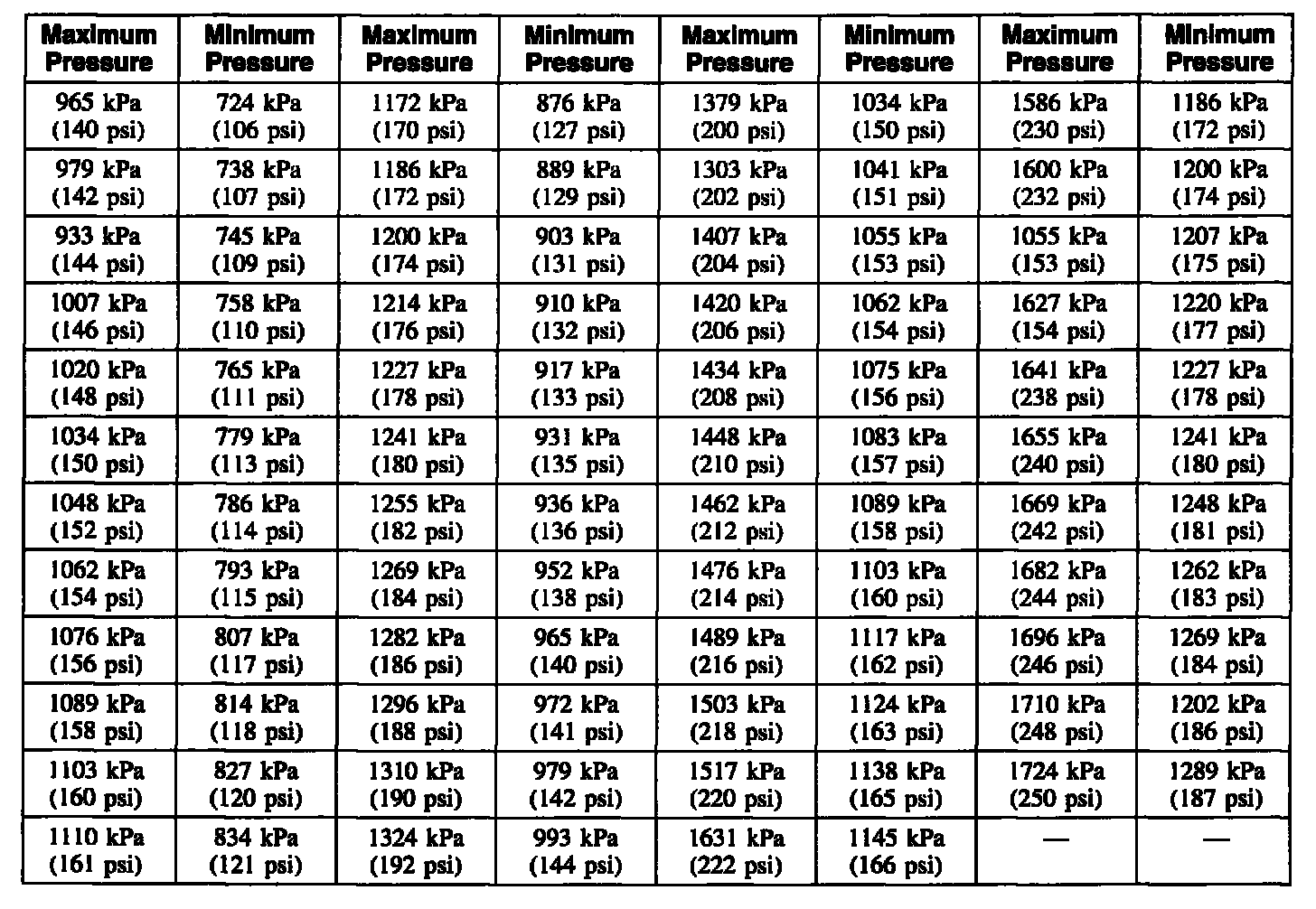 Use the Compression Pressure Limit Chart when checking cylinder compression so that the lowest reading is within 75 percent of the highest reading.