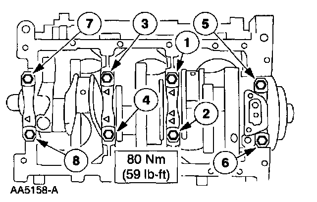 Connecting rod cap nuts 35 Nm (26 ft. lbs.)