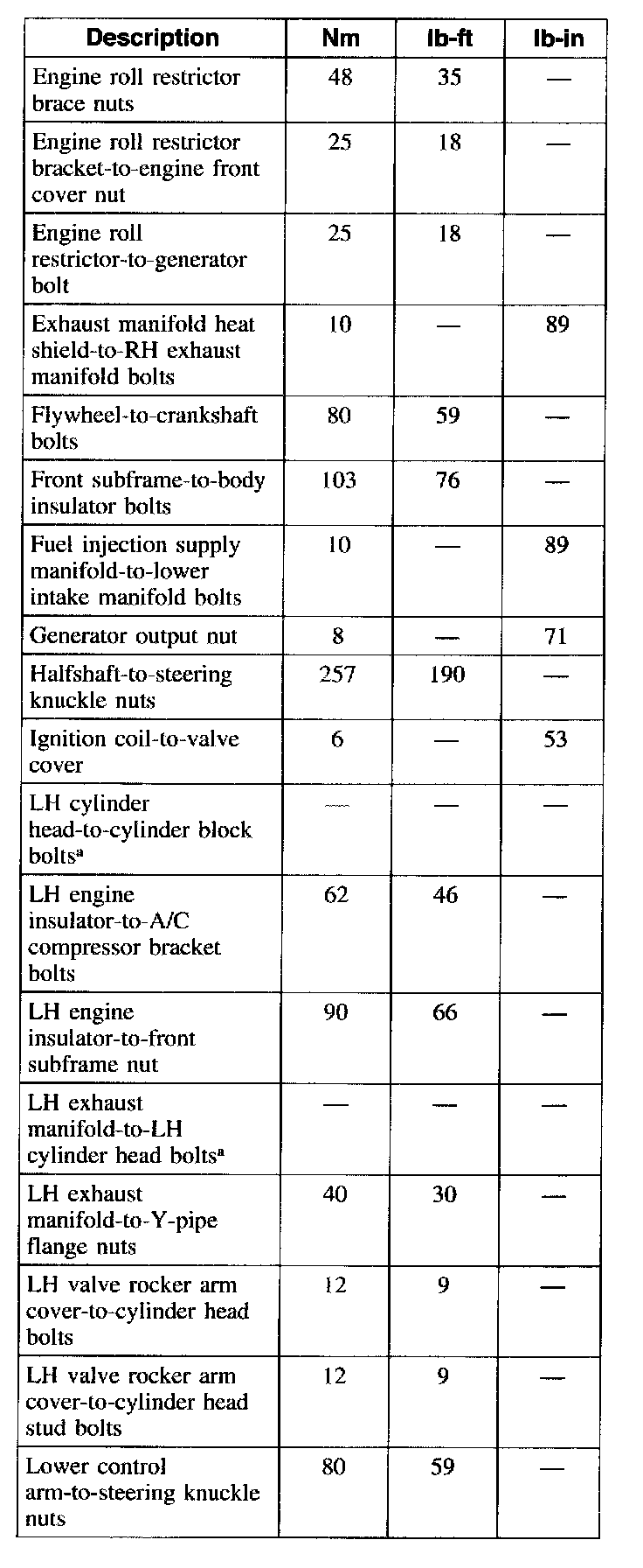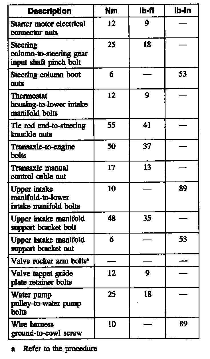Torque Specifications