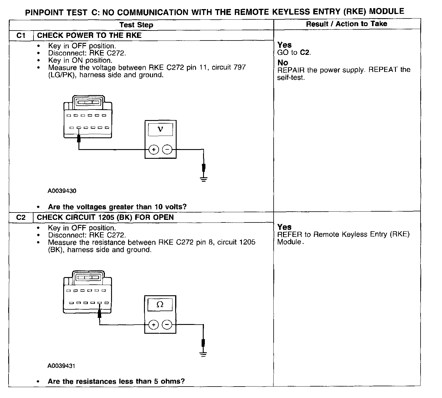 PINPOINT TEST C: NO COMMUNICATION WITH THE REMOTE KEYLESS ENTRY (RKE) MODULE