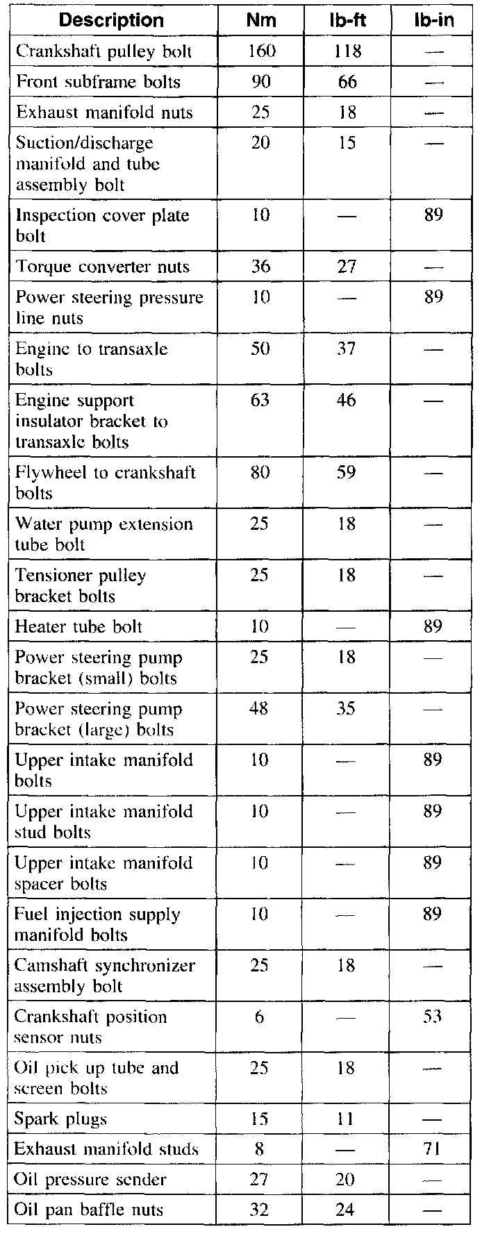 Torque Specifications
