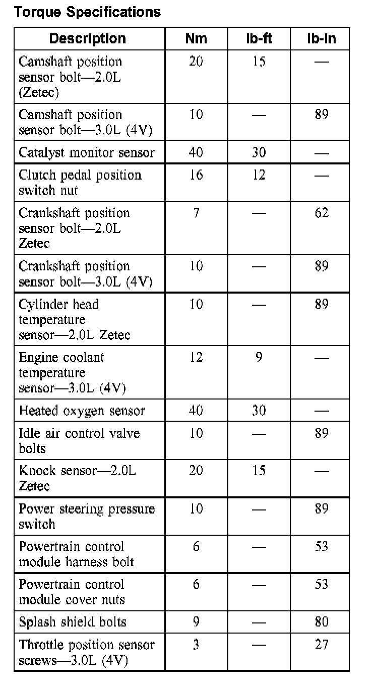 Torque Specifications: