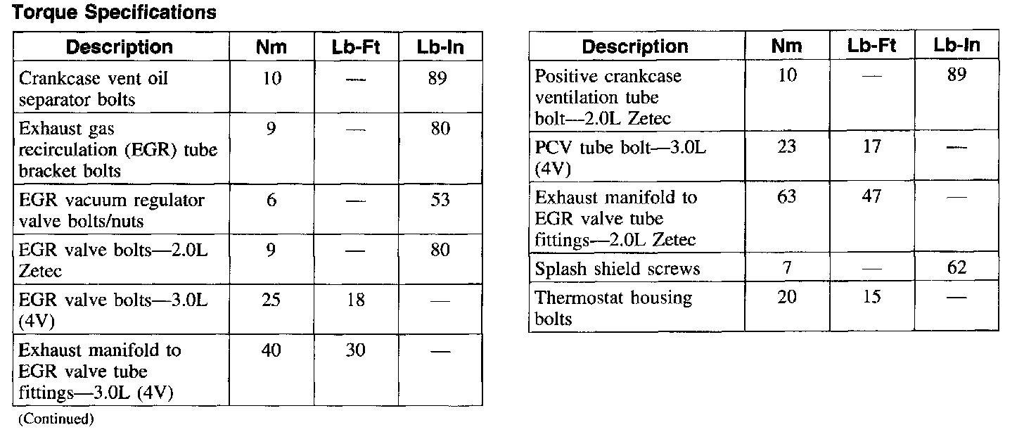 Torque Specifications: