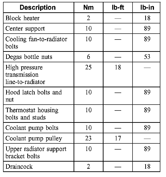 Torque Specifications