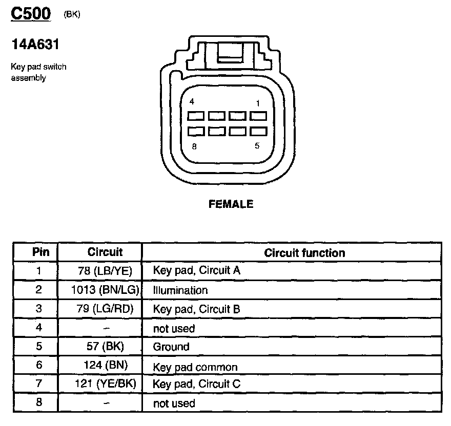 Keyless Entry Key-Pad: Diagrams