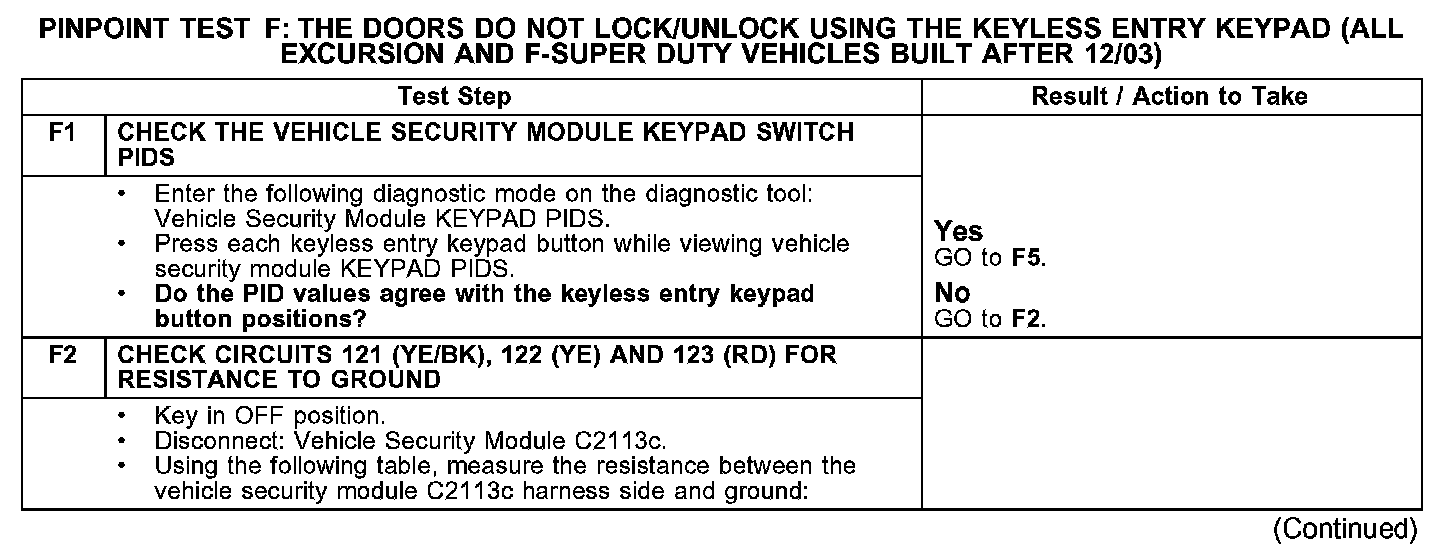 PINPOINT TEST F: THE DOORS DO NOT LOCK/UNLOCK USING THE
