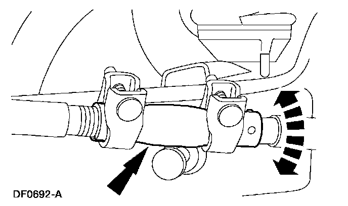 2. Turn the engine off, and hold the steering wheel in the straight-forward position by attaching a rigid link from the steering wheel to the brake pedal.