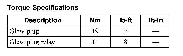Glow Plug System: Specifications
