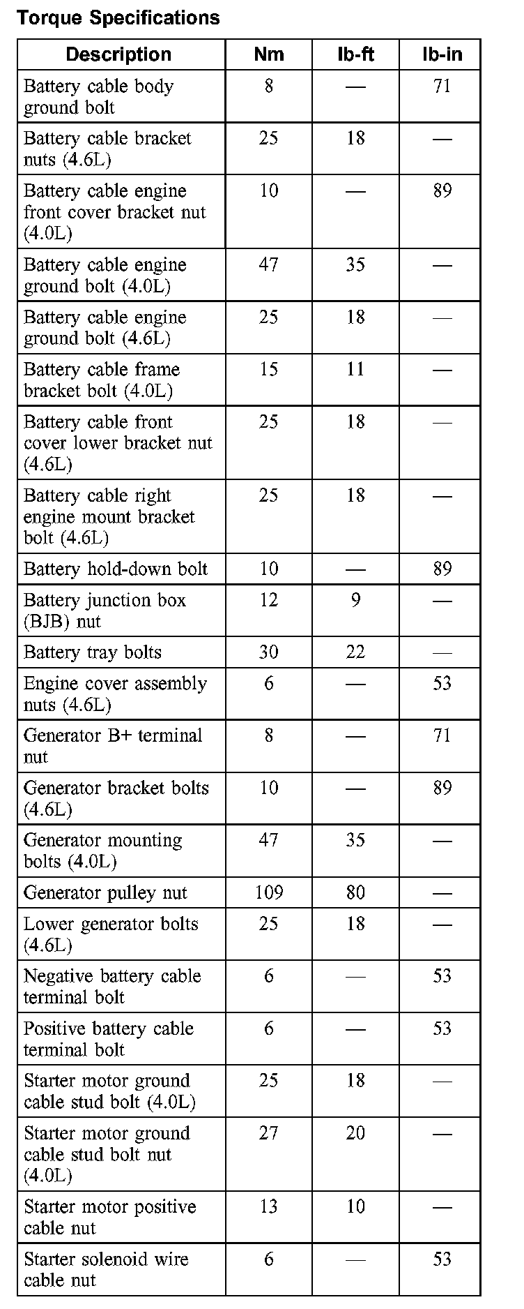 Torque Specifications: