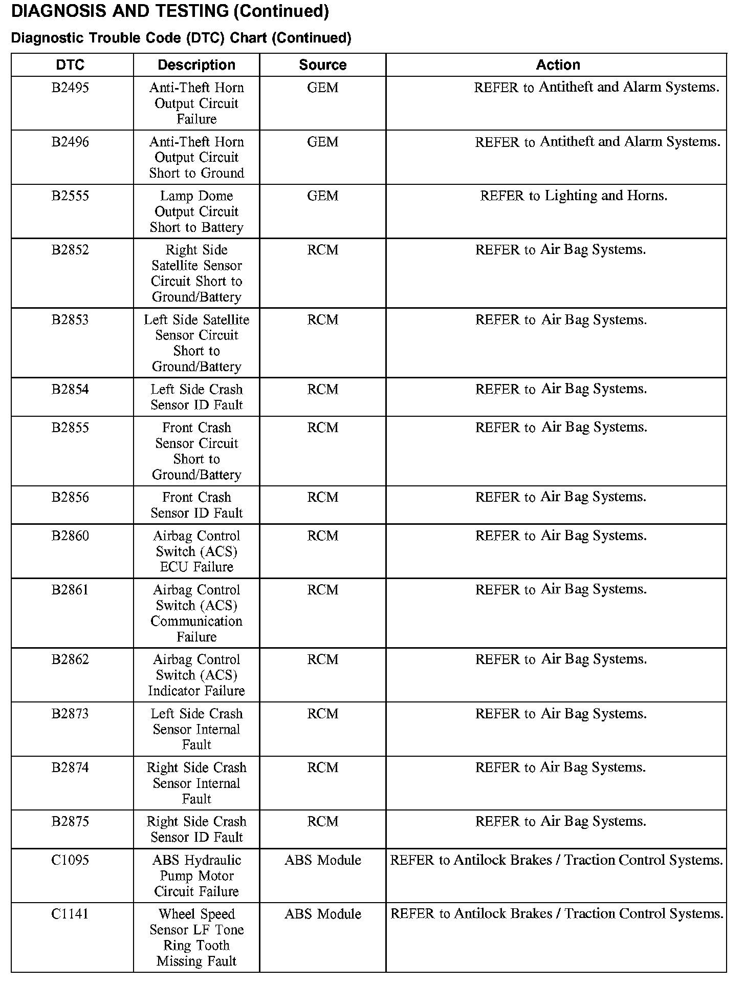DTC Chart B2495 - C1141: