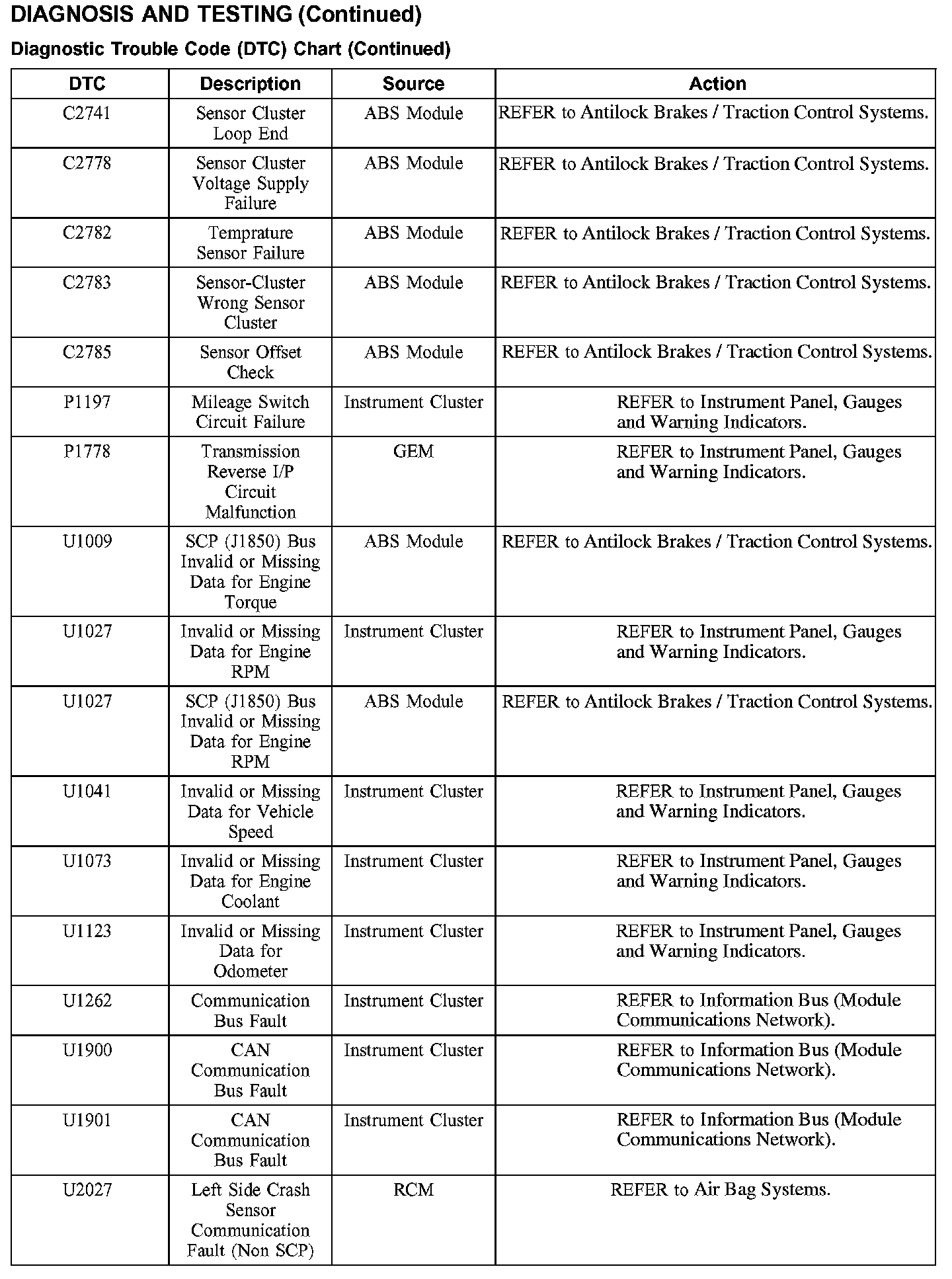 DTC Chart C1281 - C1994: