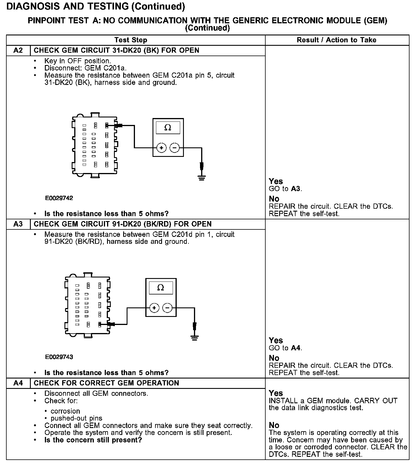 PINPOINT TEST A: NO COMMUNICATION WITH THE GENERIC ELECTRONIC MODULE (GEM)