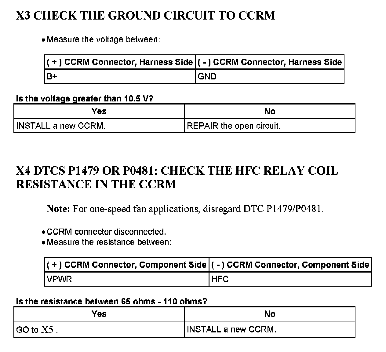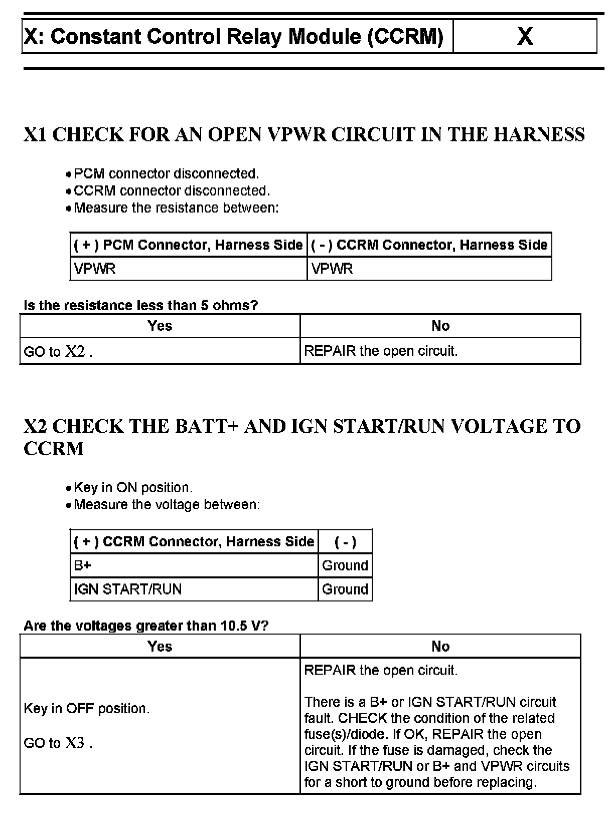 PINPOINT TEST X: CONSTANT CONTROL RELAY MODULE (CCRM)