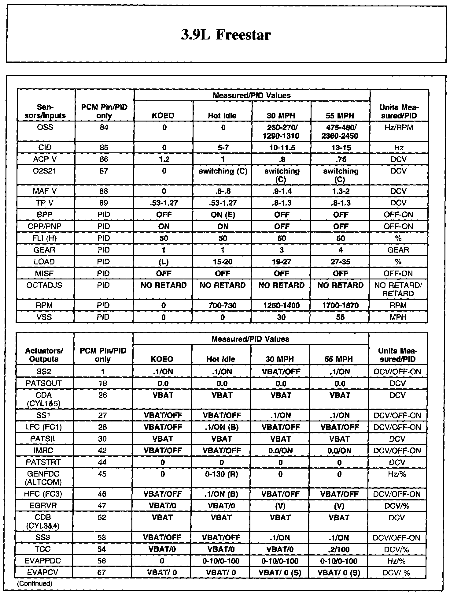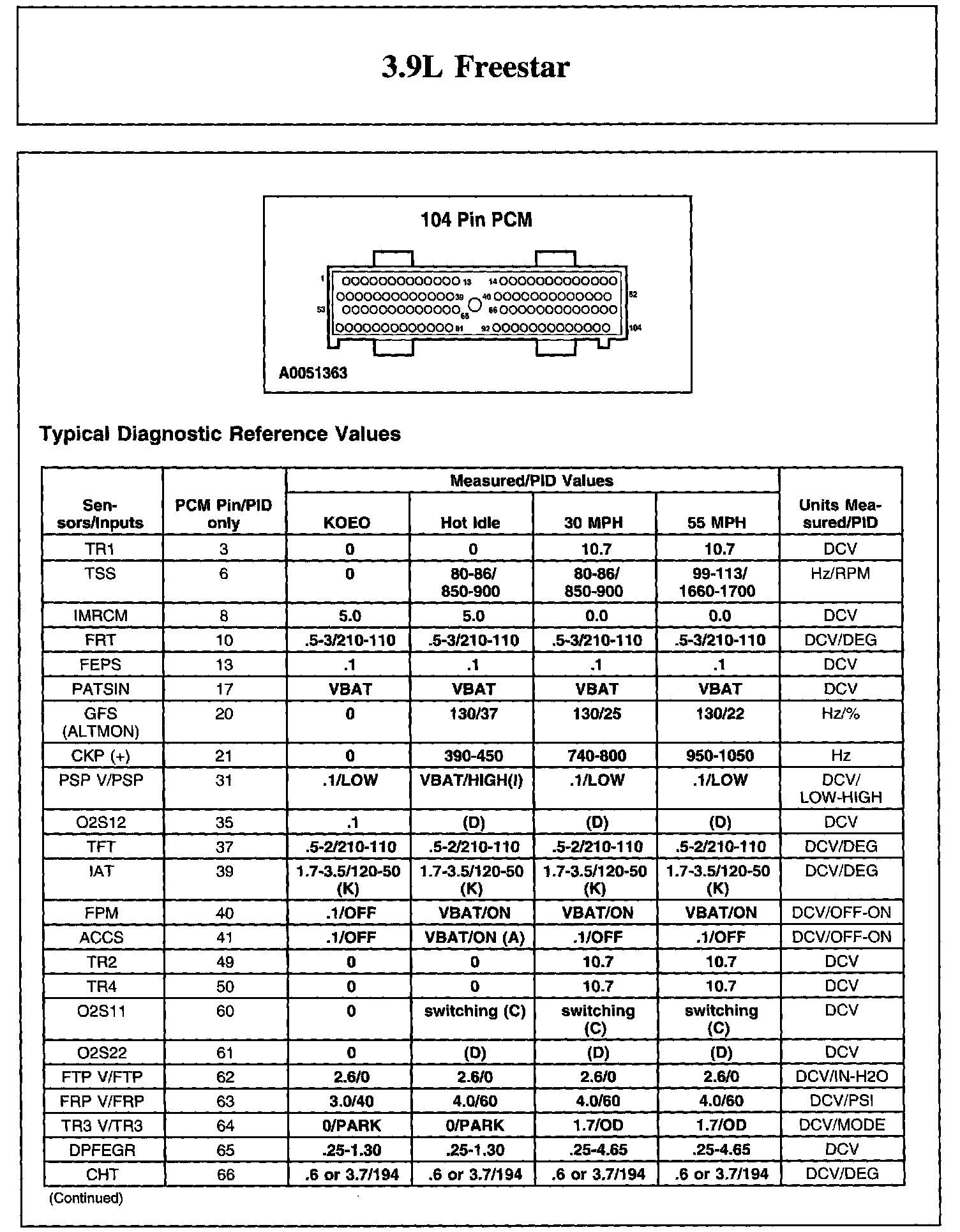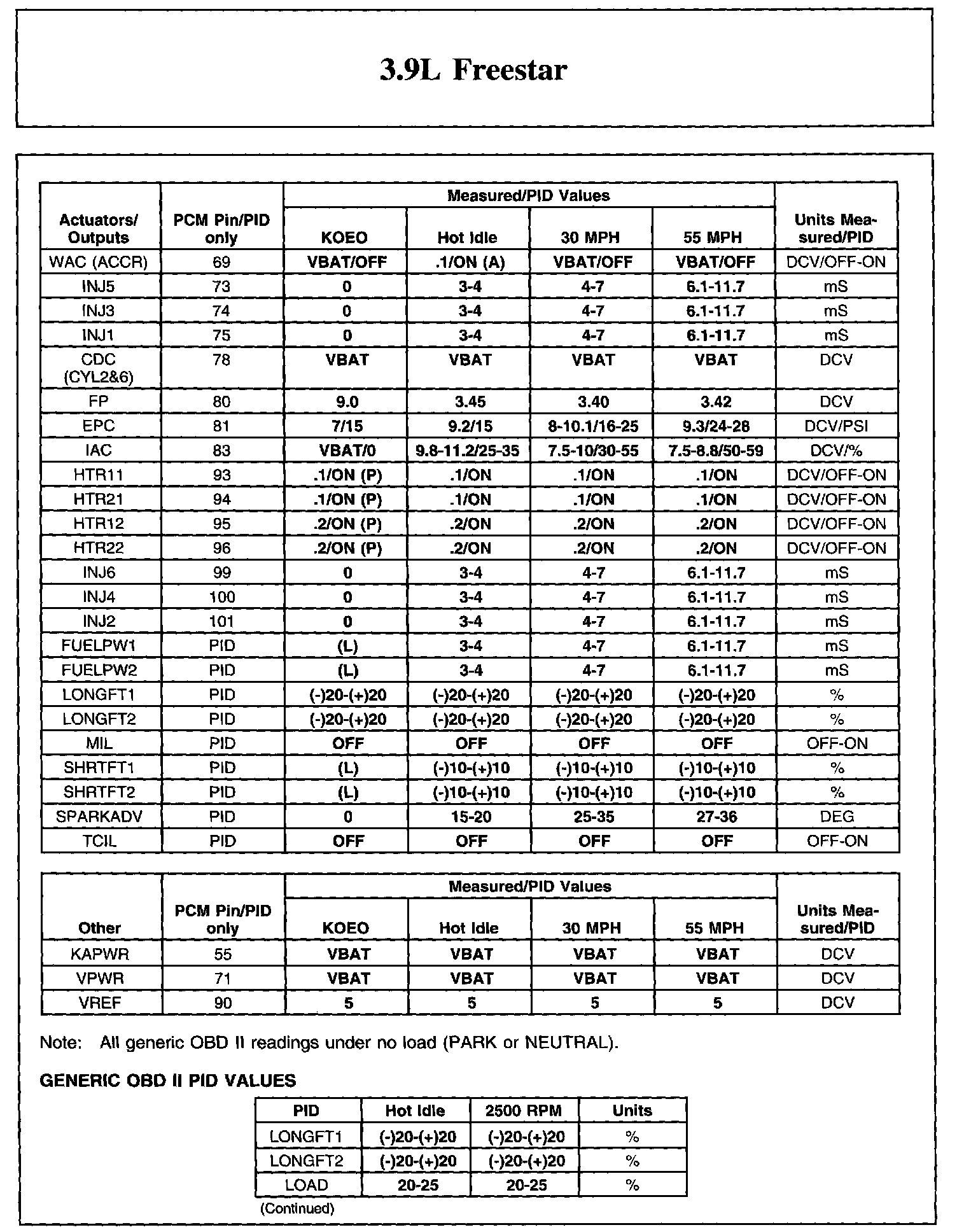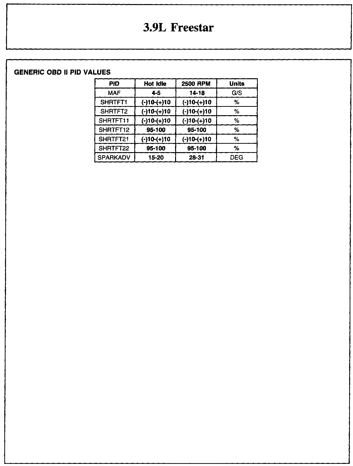 Home >> Ford >> 2004 >> Freestar V6-3.9L VIN 6 >> Repair and Diagnosis >> Powertrain Management >> Computers and Control Systems >> Testing and Inspection >> Scan Tool Testing and Procedures >> Reference Values >> Typical Diagnostic Reference Values