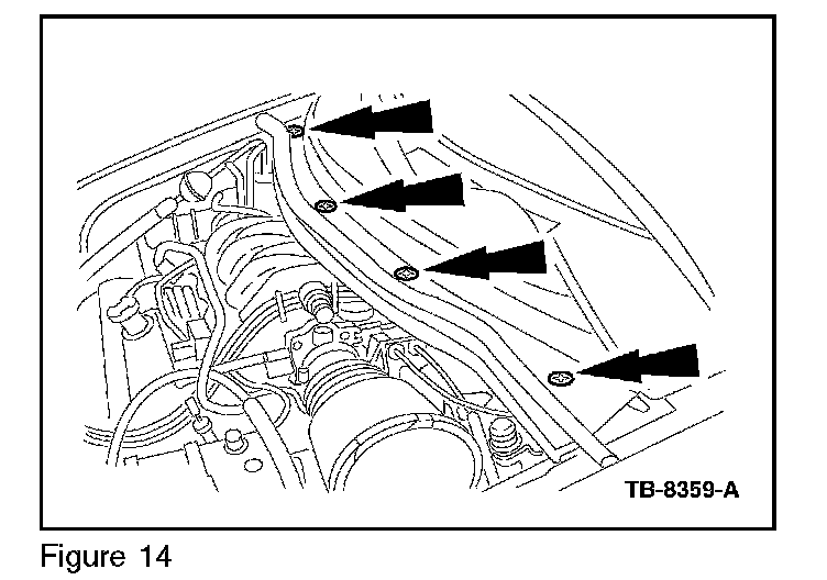 14. Remove and discard the two rubber plugs on the bottom of the cowl sheet metal. (Figure 11)