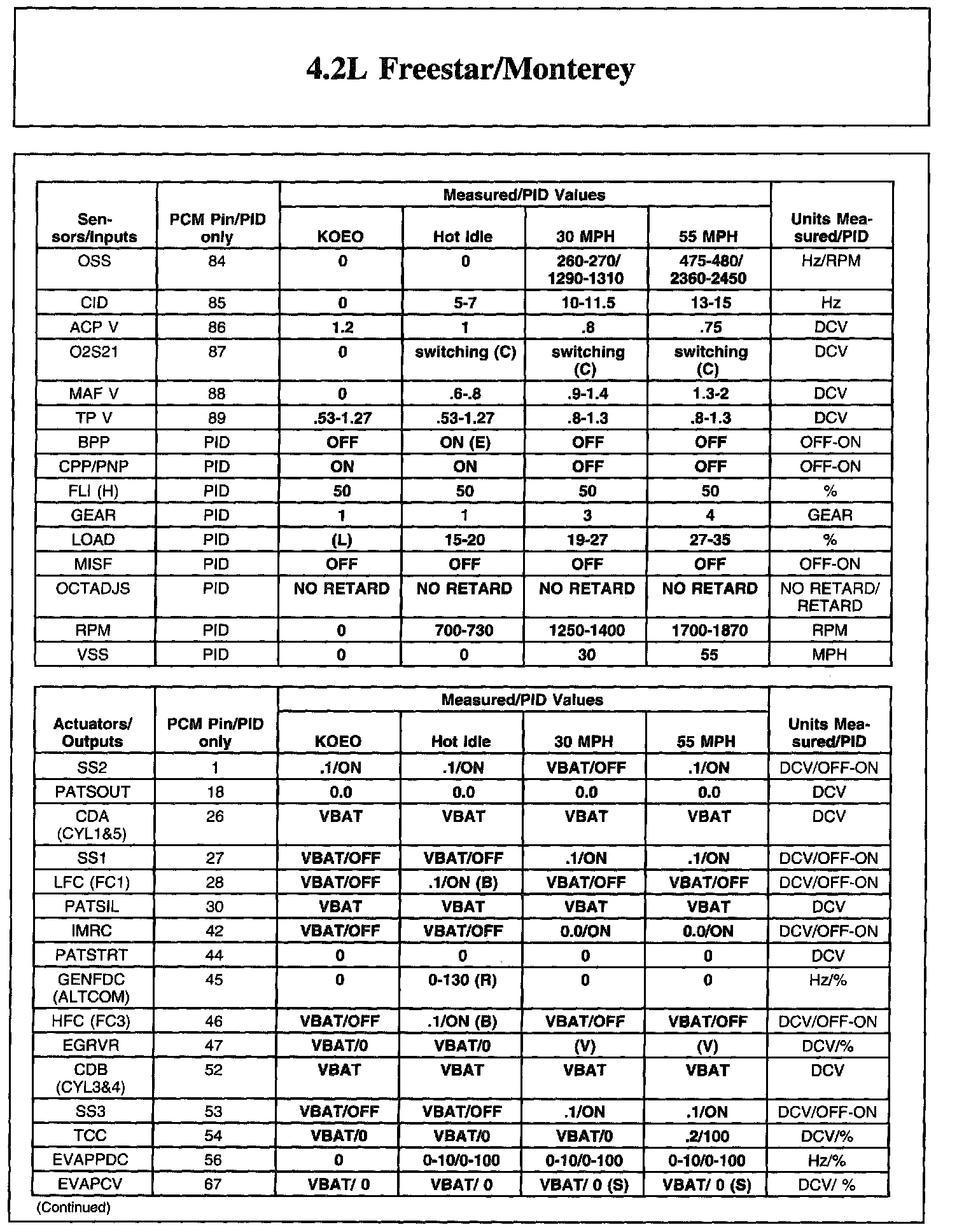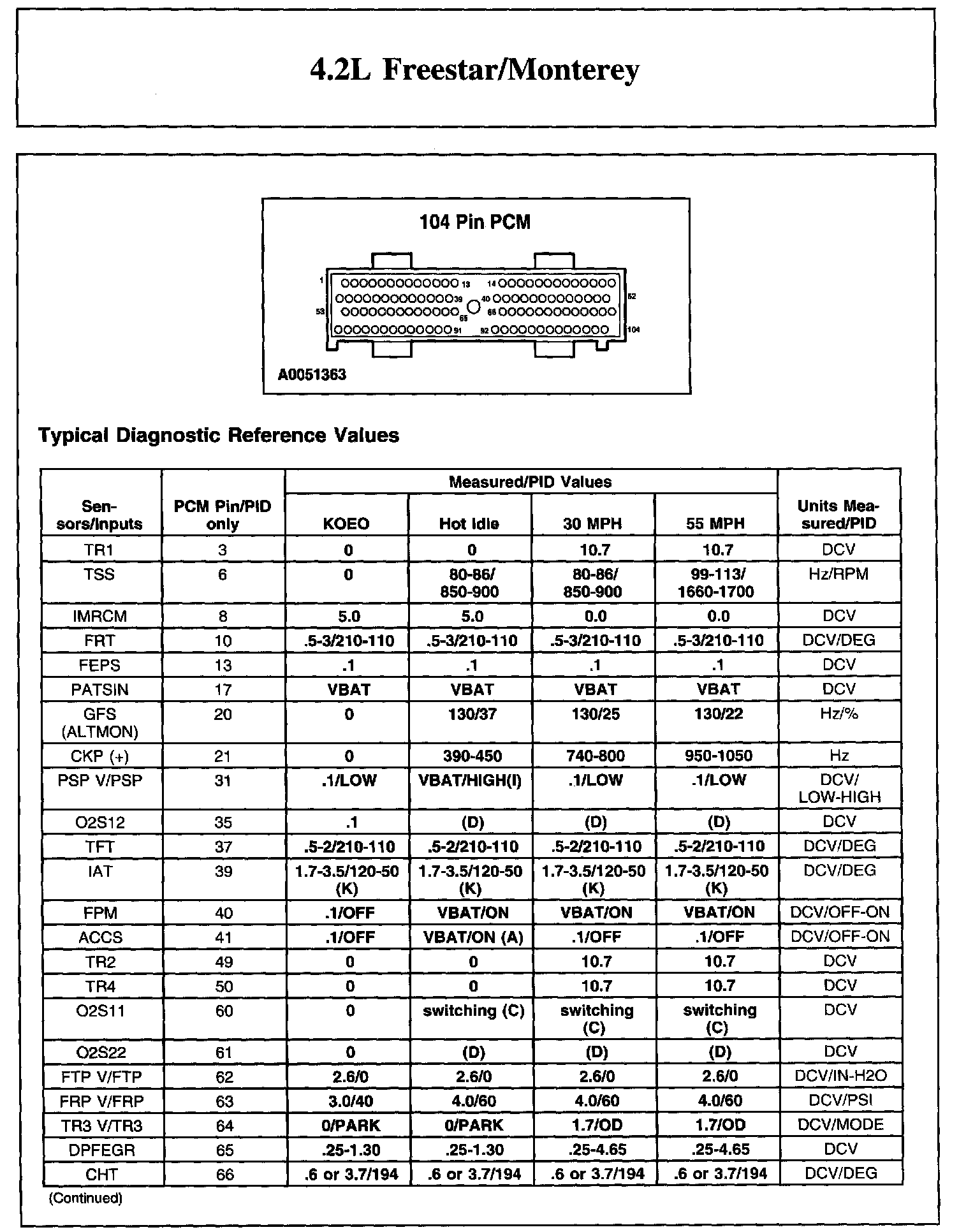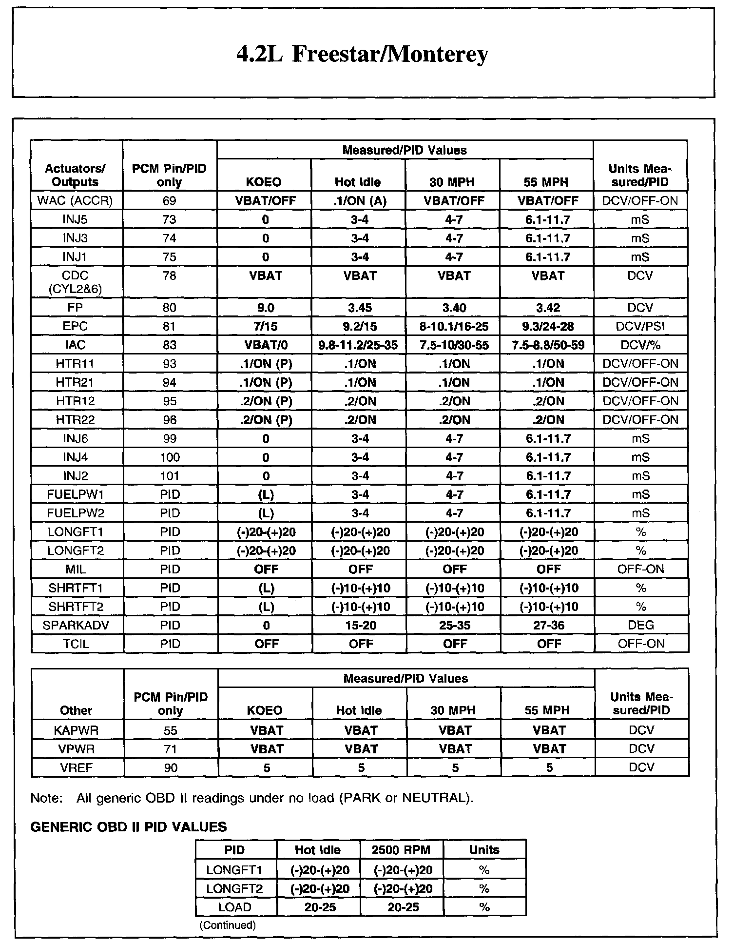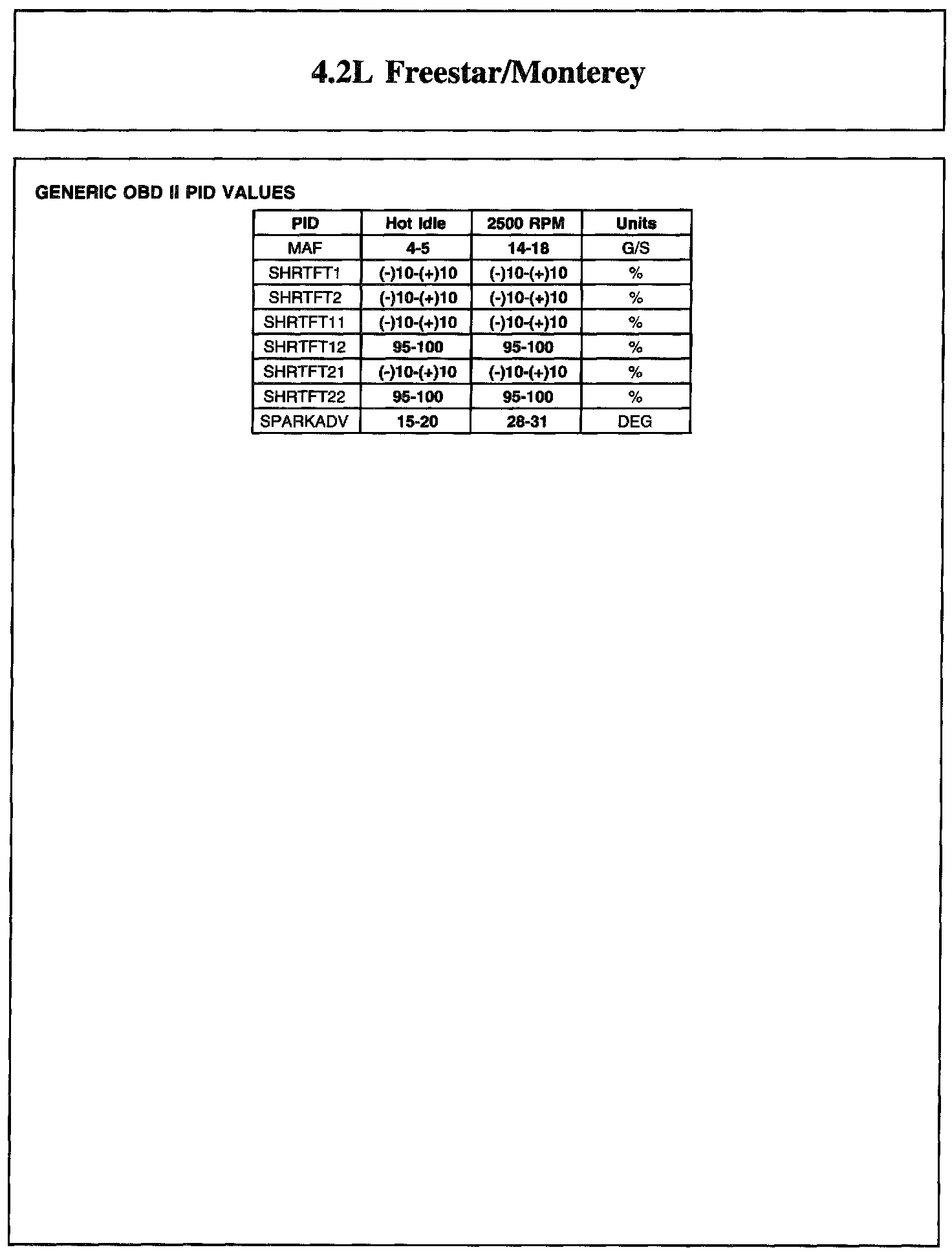 Home >> Ford >> 2004 >> Freestar V6-4.2L VIN 2 >> Repair and Diagnosis >> Powertrain Management >> Computers and Control Systems >> Testing and Inspection >> Scan Tool Testing and Procedures >> Reference Values >> Typical Diagnostic Reference Values