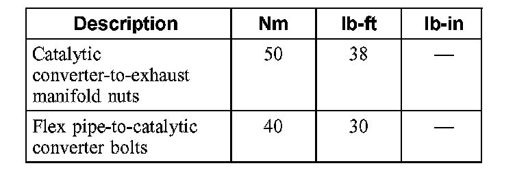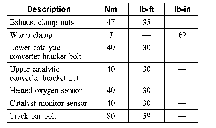 Torque Specifications: