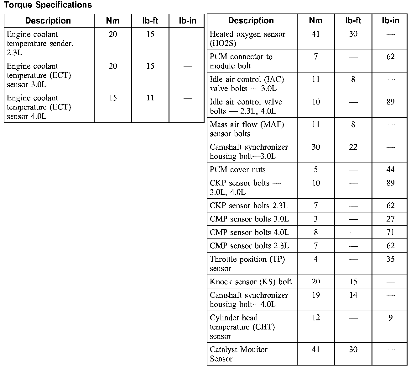 Torque Specifications: