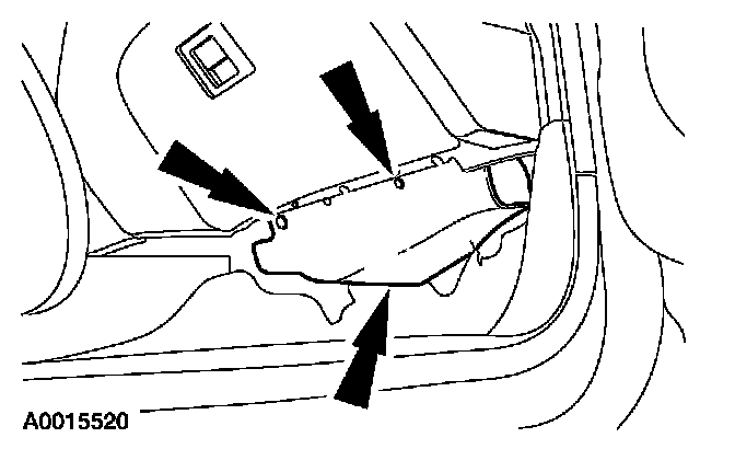 3. Open the glove compartment. Pressing the tabs inward, lower the glove compartment towards the floor.