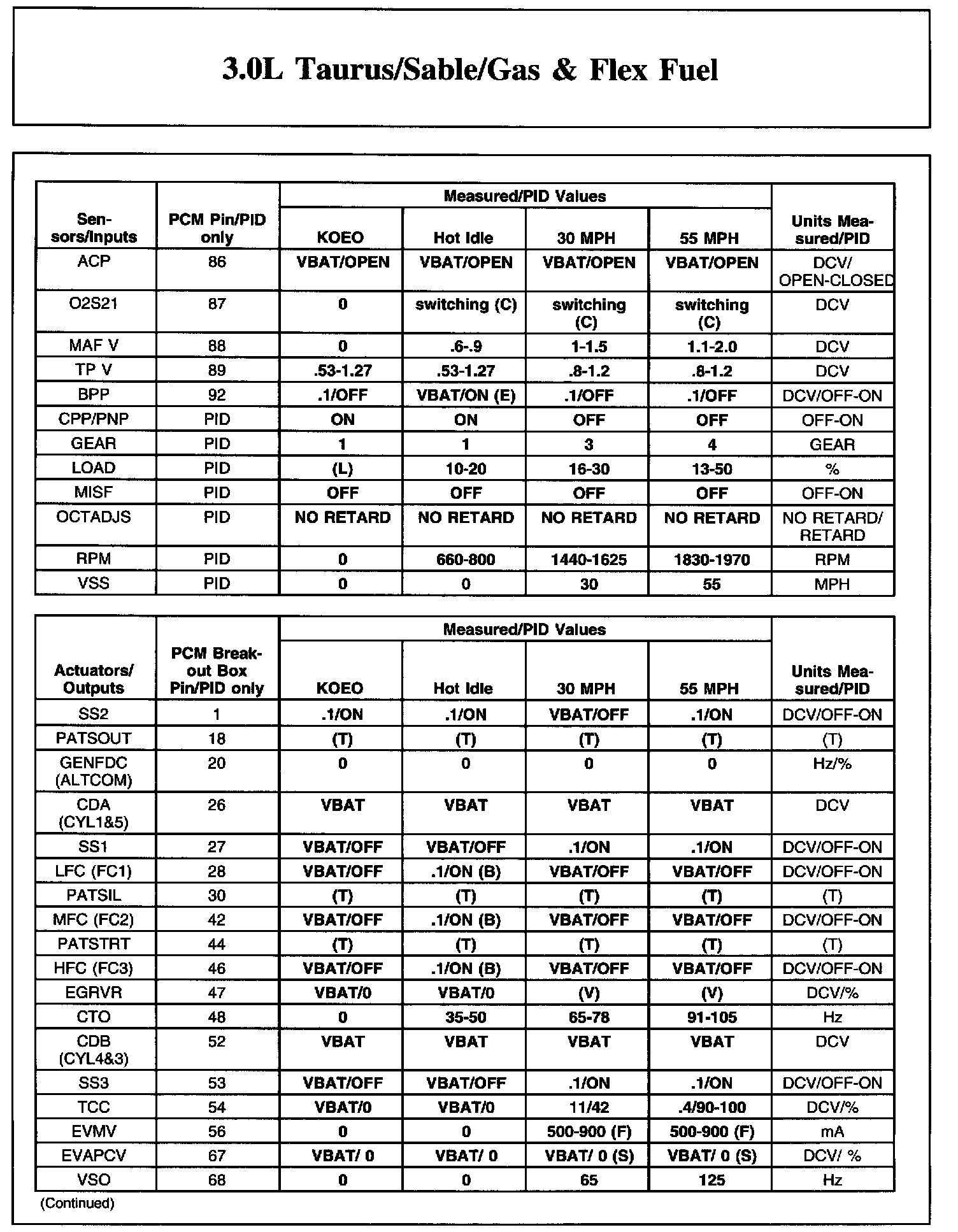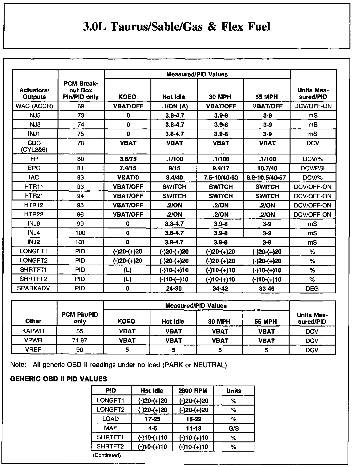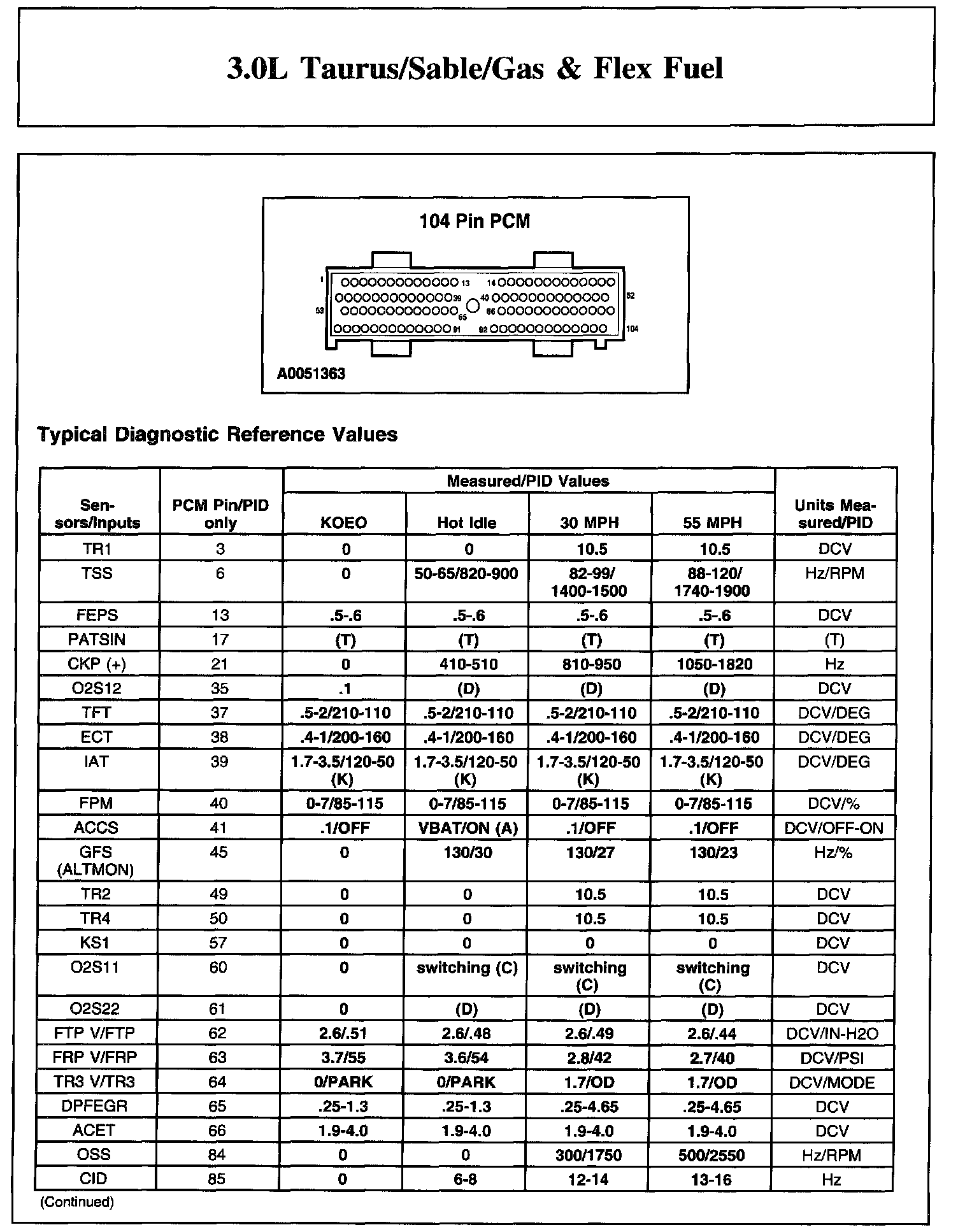 Home >> Ford >> 2004 >> Taurus V6-3.0L VIN U >> Repair and Diagnosis >> Powertrain Management >> Computers and Control Systems >> Testing and Inspection >> Scan Tool Testing and Procedures >> Reference Values >> Typical Diagnostic Reference Values