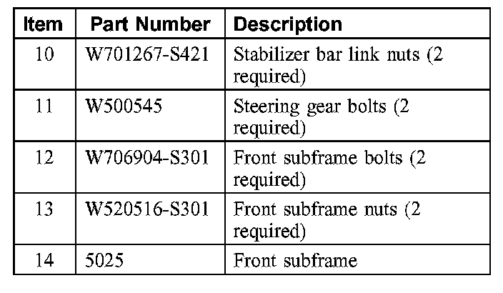 - When installing the front subframe rear bolts, make sure both of the front subframe rear bolts are fully engaged in their cage nuts before tightening to specification.