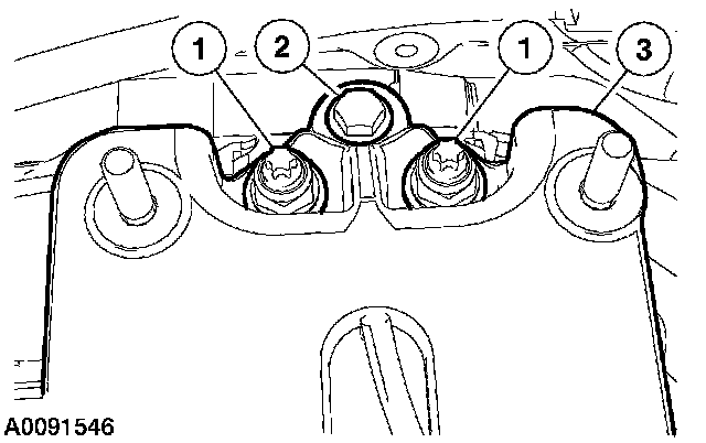 1 Remove the 2 nuts.