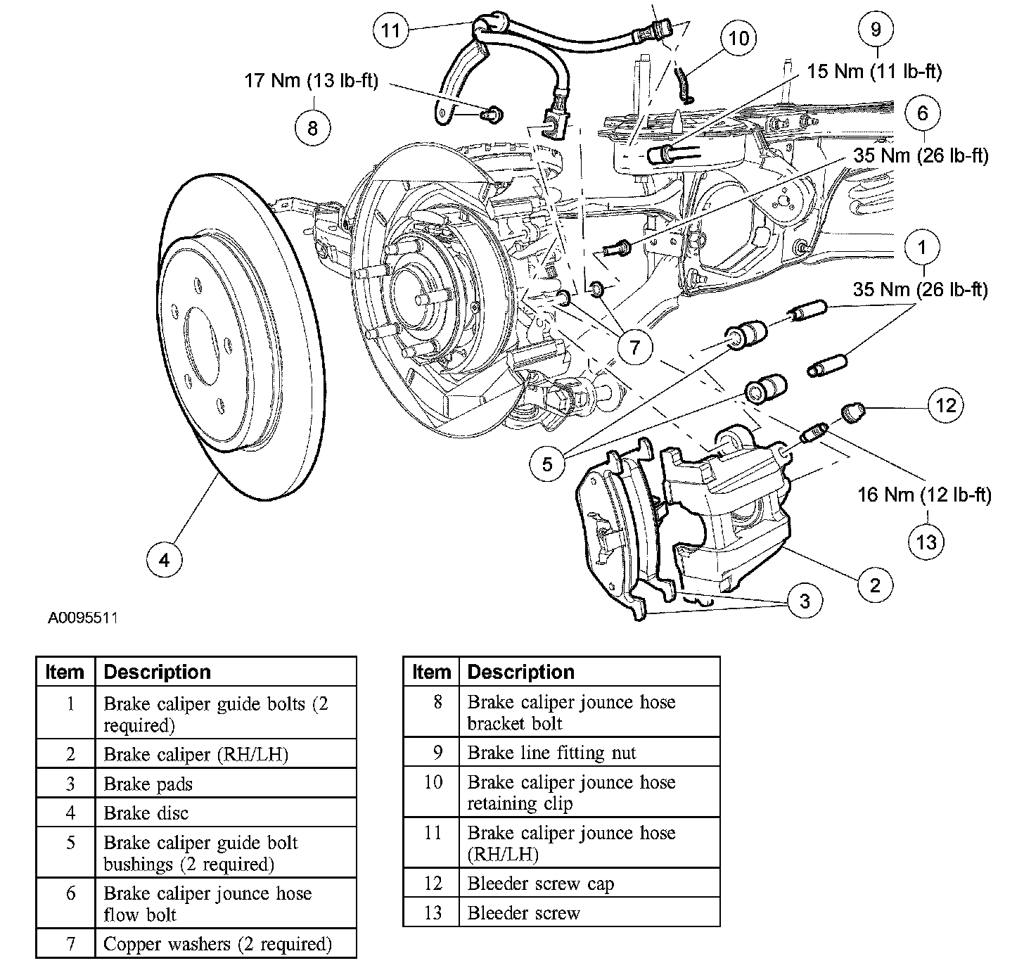 Rear Disc Brake System - Exploded View:
