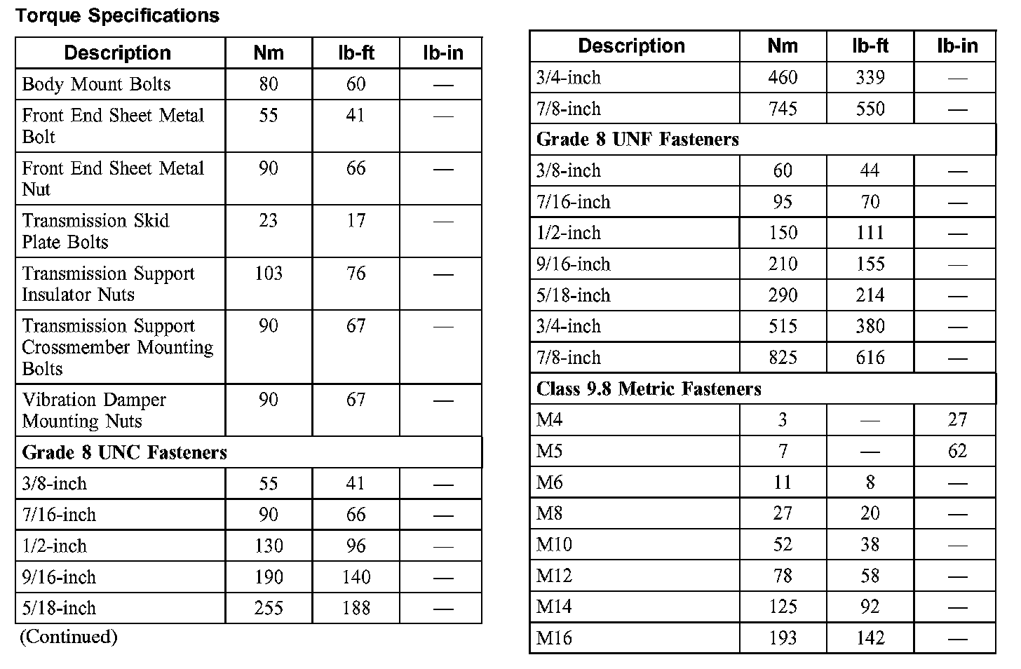 Torque Specifications: