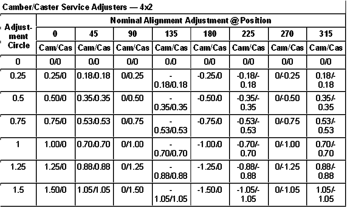Camber/Caster Service Adjuster Selection Chart