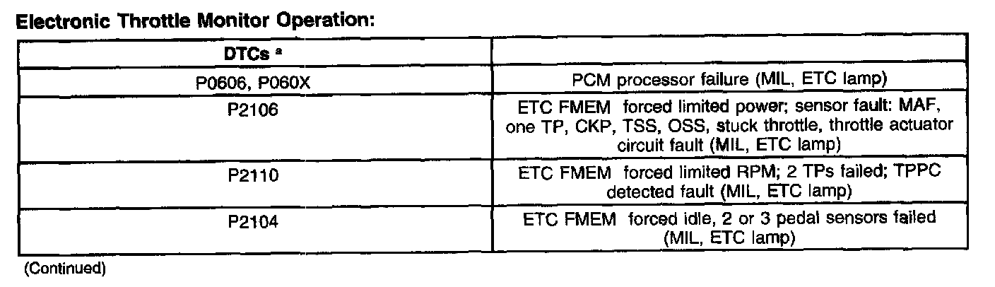It should be noted that the ETC system includes a warning indicator (wrench light) on the instrument cluster that illuminates when a fault is detected. Faults are accompanied by DTCs and may also illuminate the malfunction indicator lamp (MIL).
