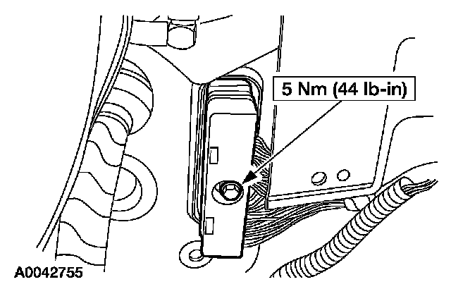 2. Loosen the bolt and disconnect the powertrain control module (PCM) electrical connector.