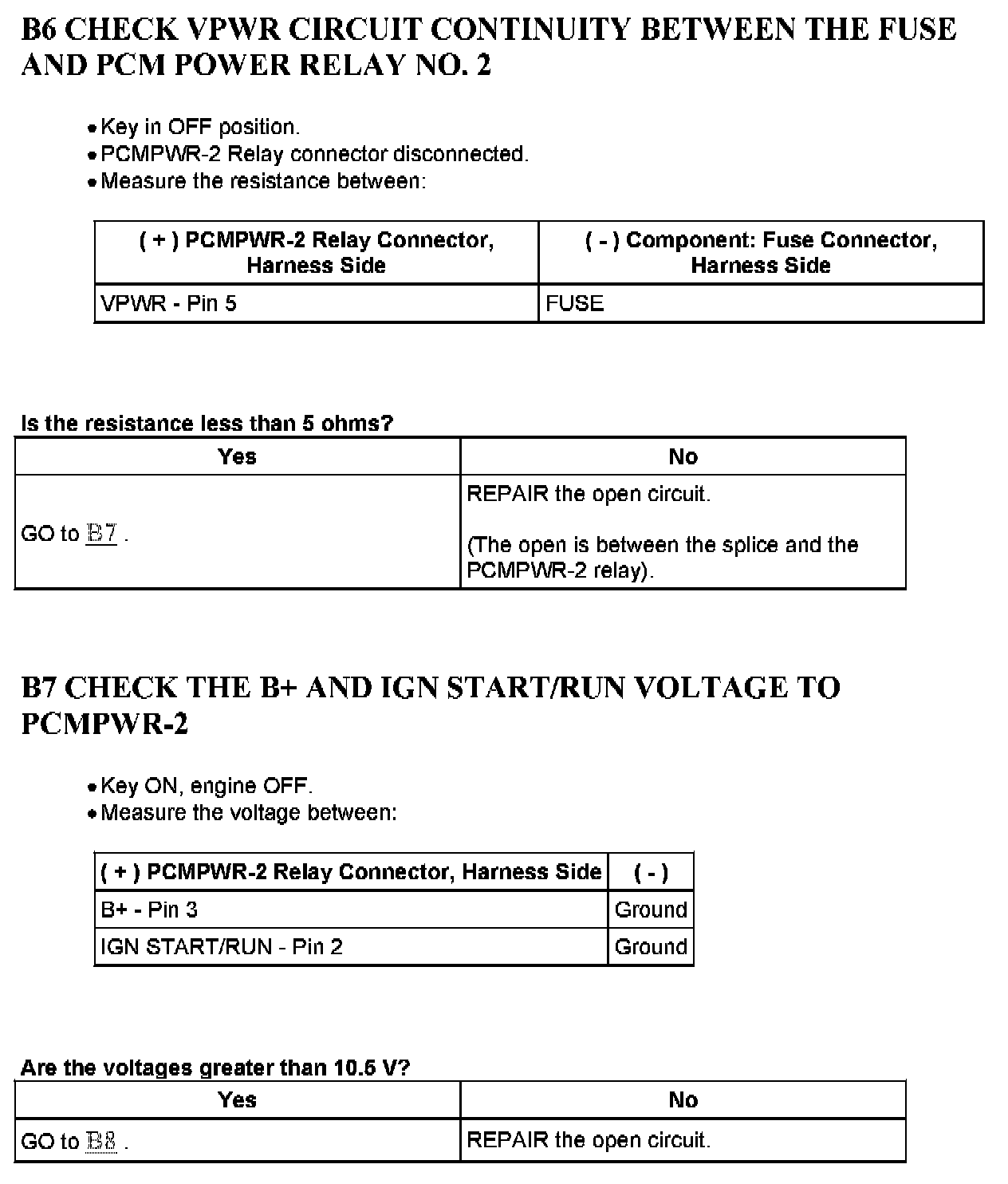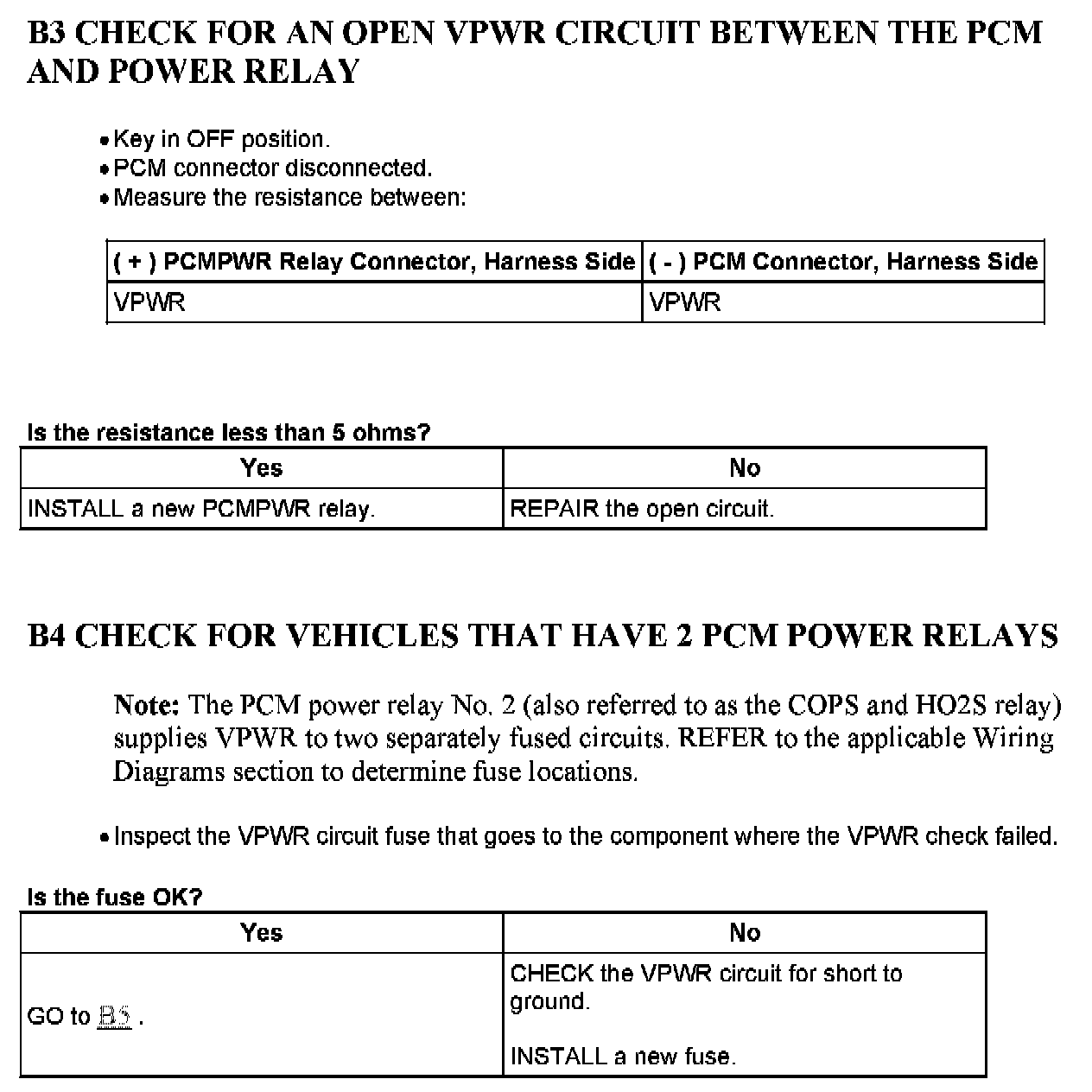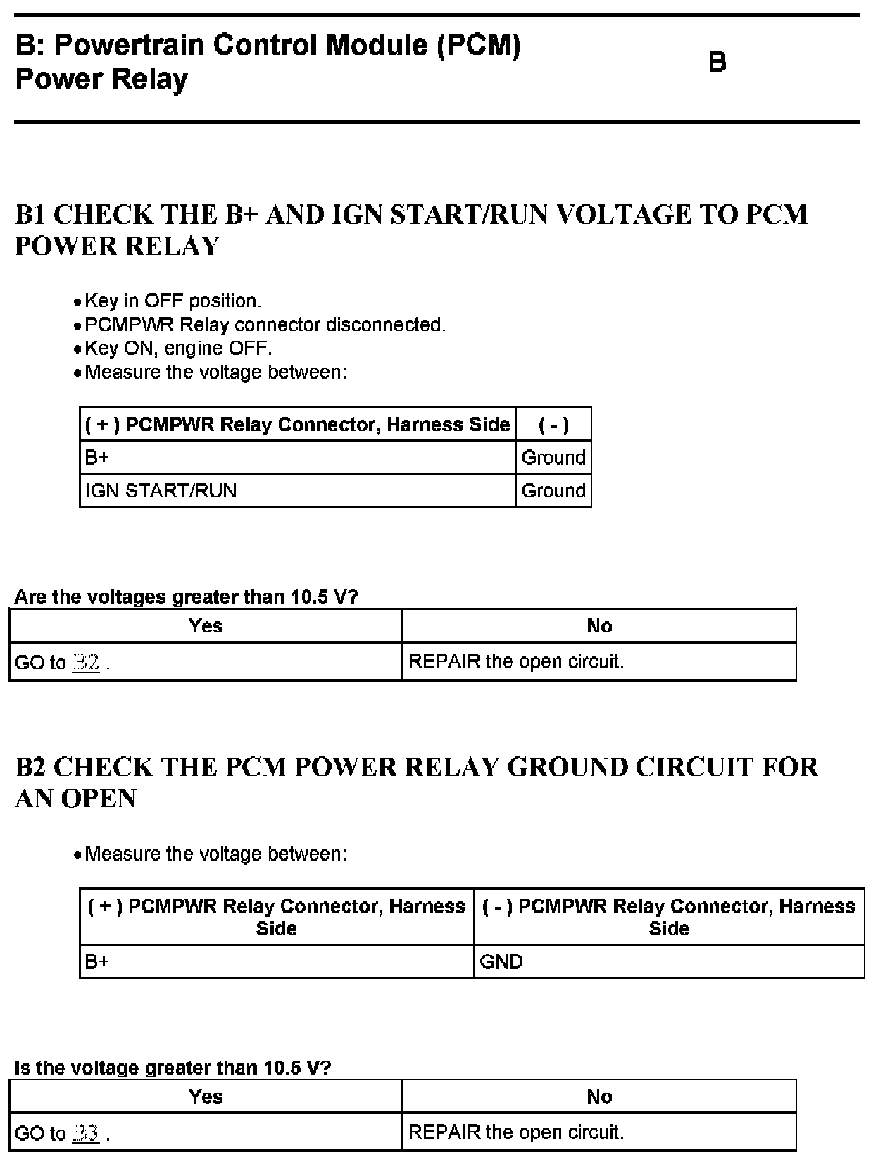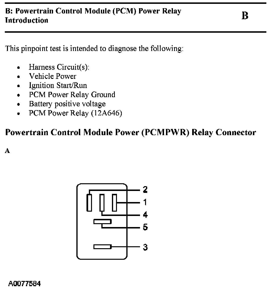 Test B: Powertrain Control Module (PCM) Power Relay