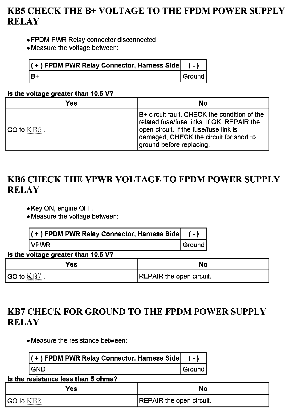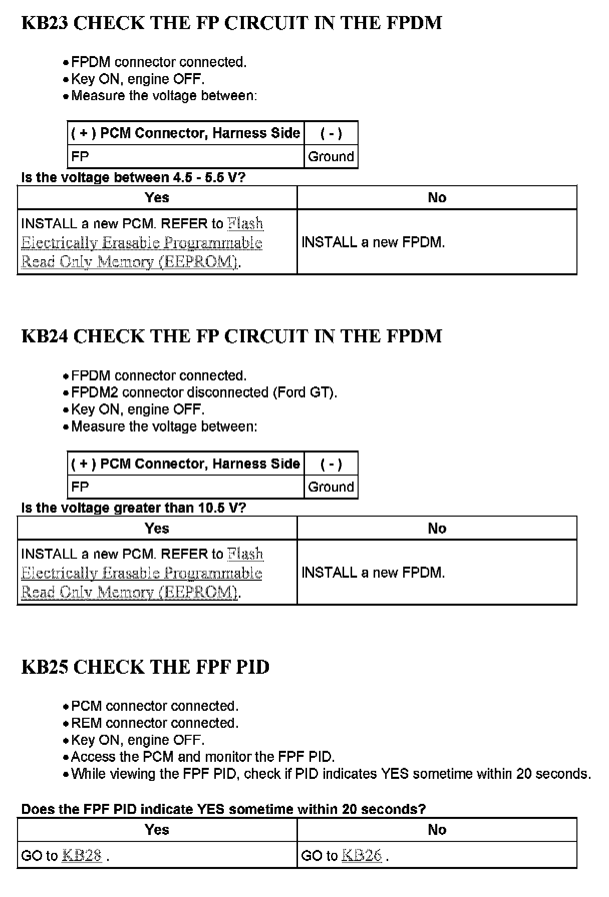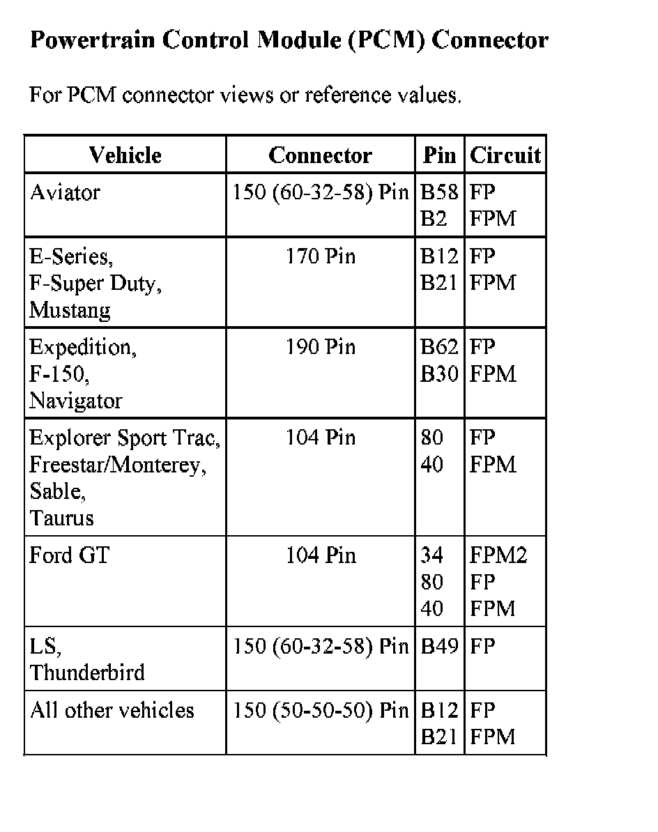 Home >> Ford >> 2005 >> Excursion 2WD V10-6.8L VIN S >> Repair and Diagnosis >> Powertrain Management >> Computers and Control Systems >> Testing and Inspection >> Pinpoint Tests >> Tests KB: Fuel Pump Driver Module