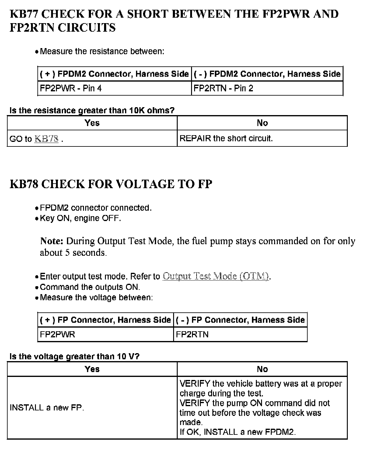 Tests KB: Fuel Pump Driver Module