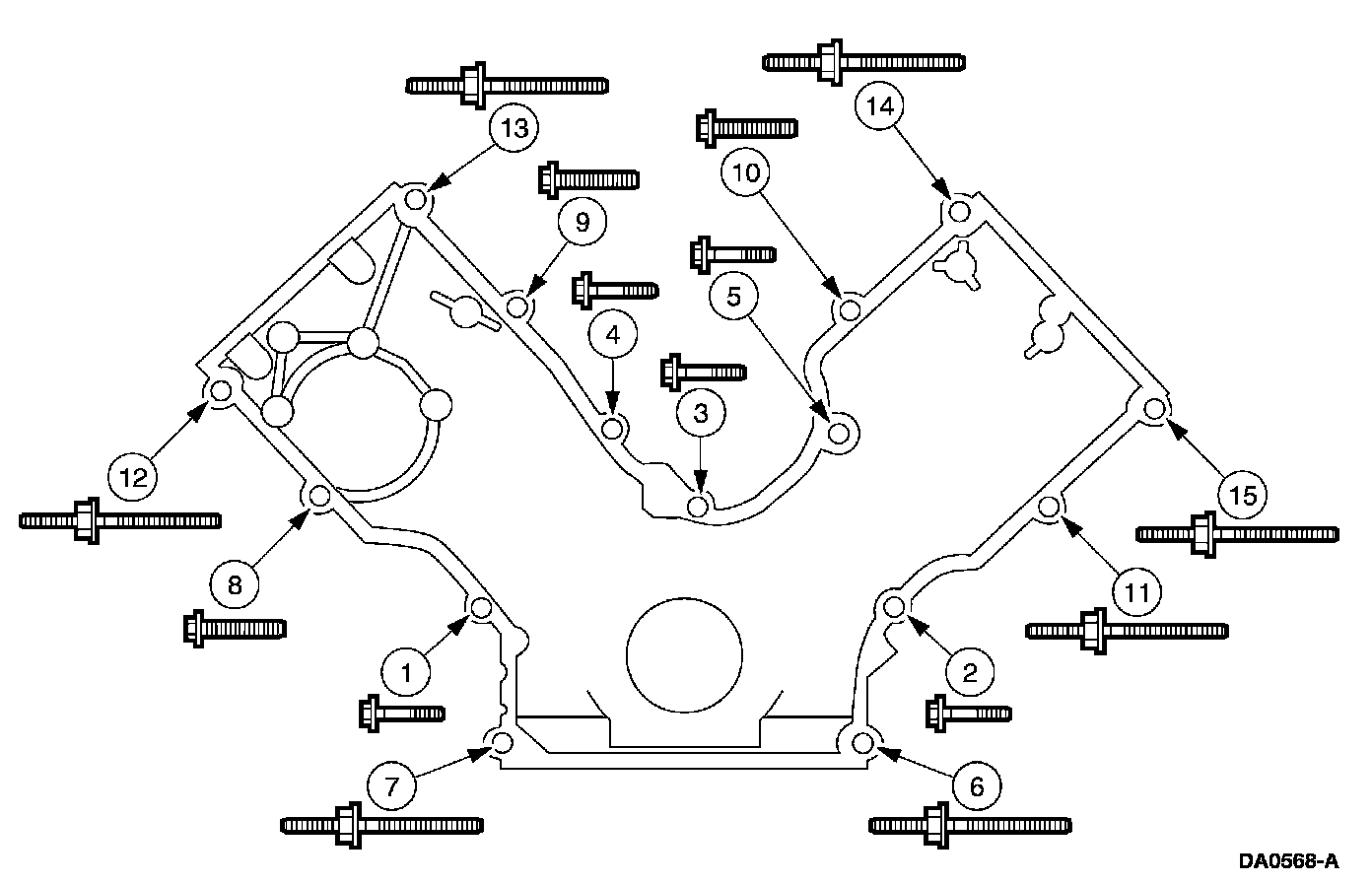 Stage 2: Tighten fasteners 6 through 15 to 48 Nm (35 ft. lbs.).