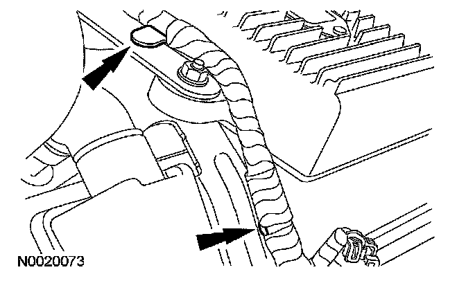 Relieve the cooling system pressure. Disconnect and plug or cap the engine vent hose and radiator vent hose.