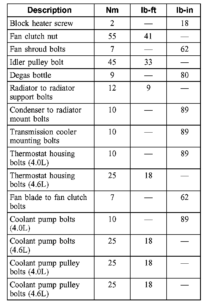 Torque Specifications:
