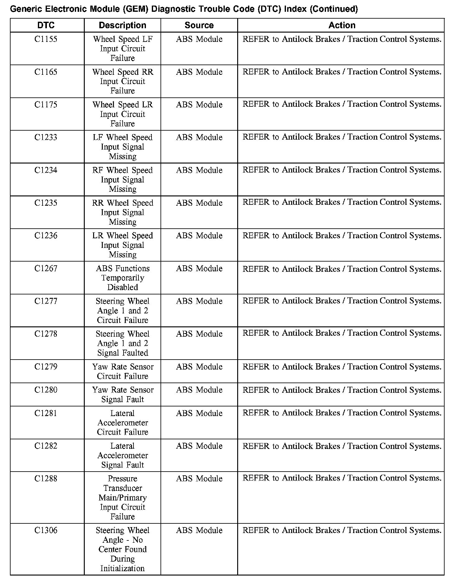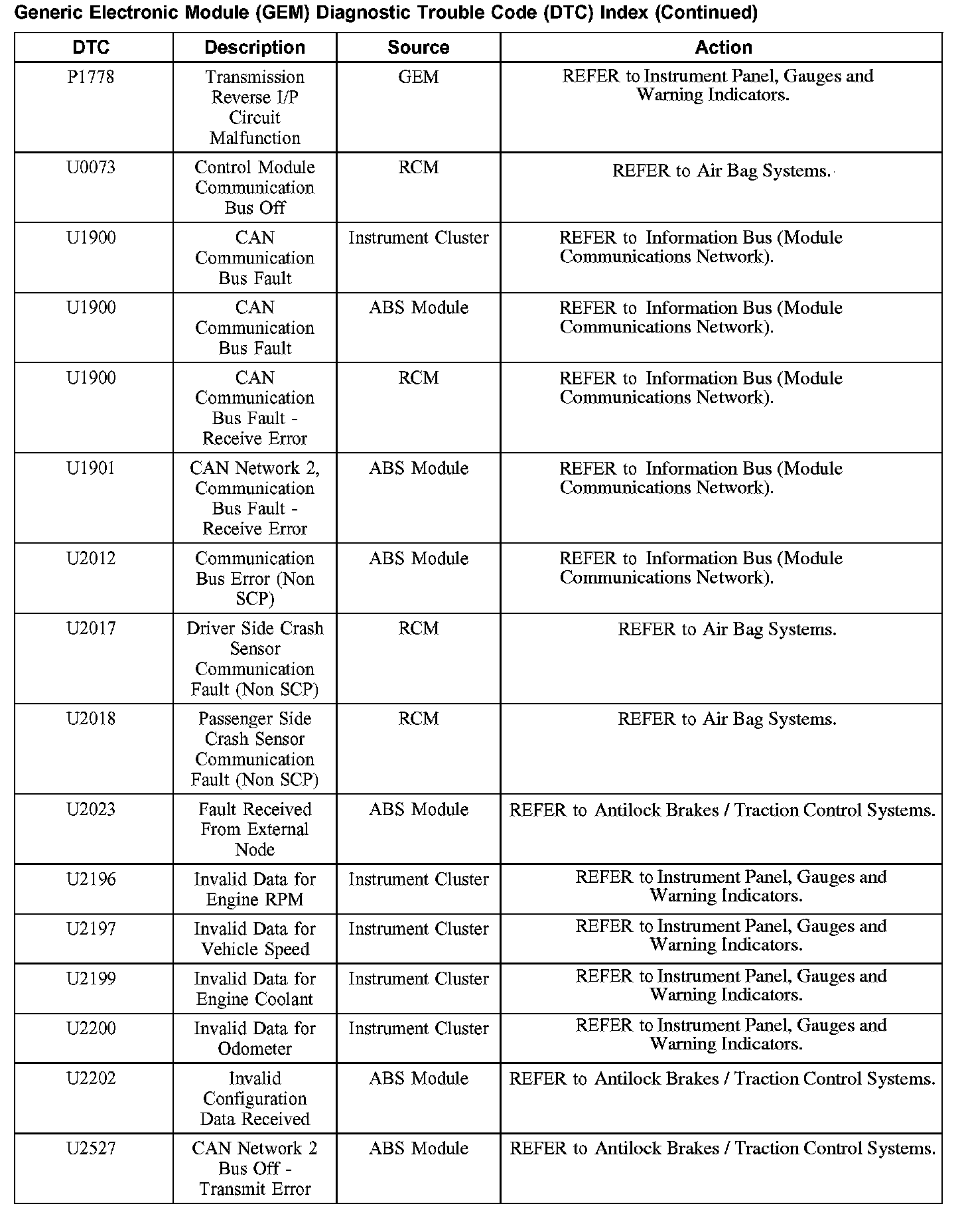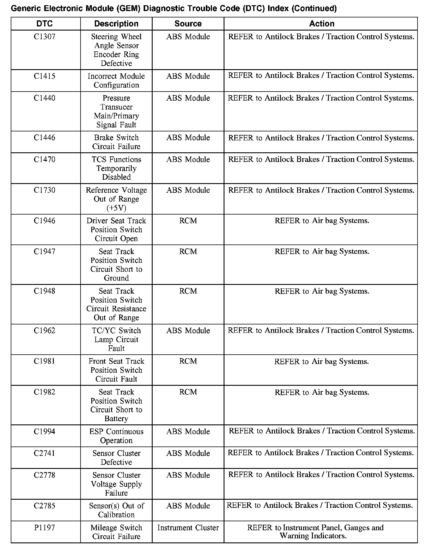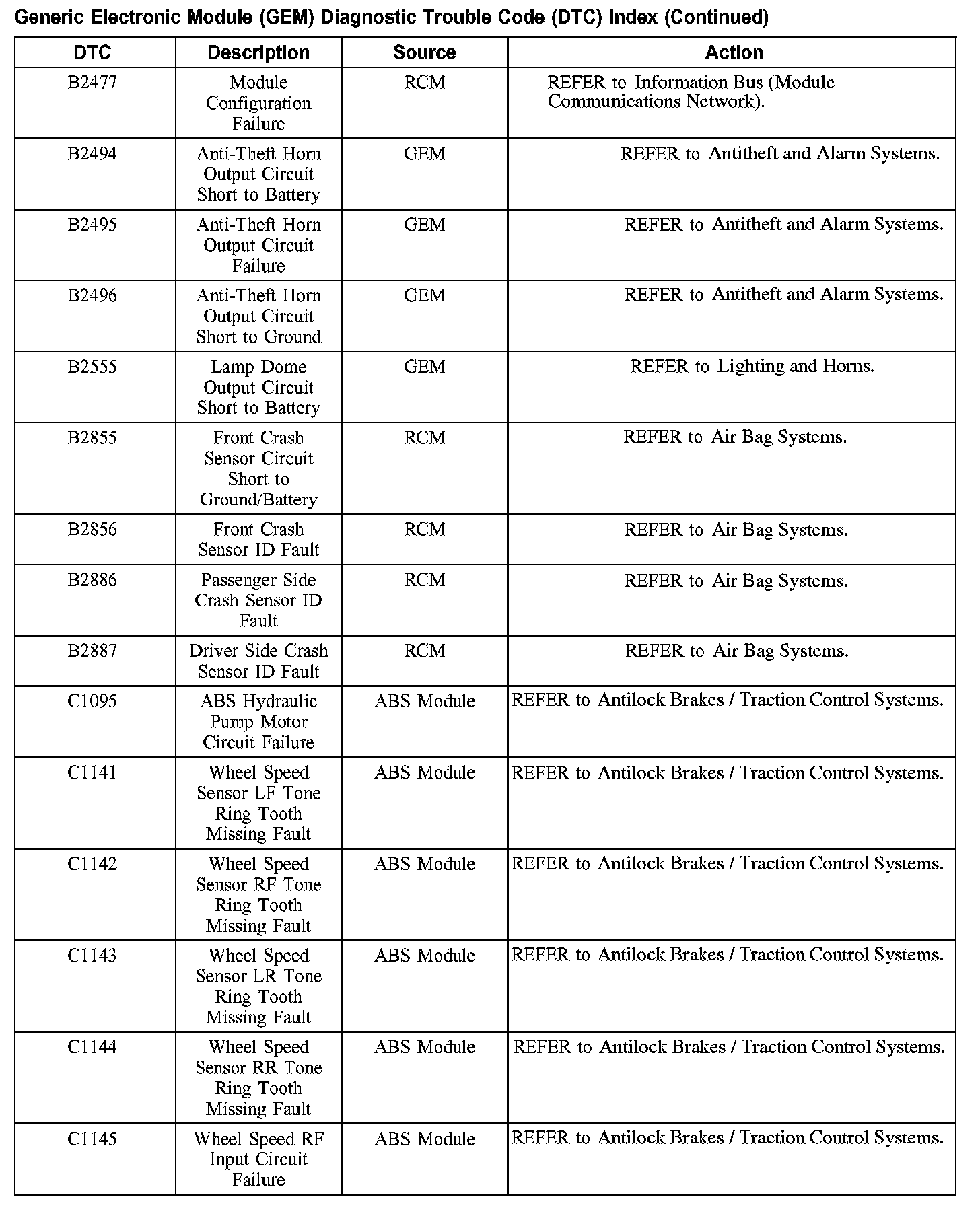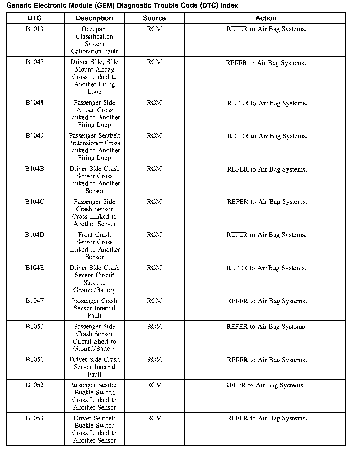 Diagnostic Trouble Code Descriptions
