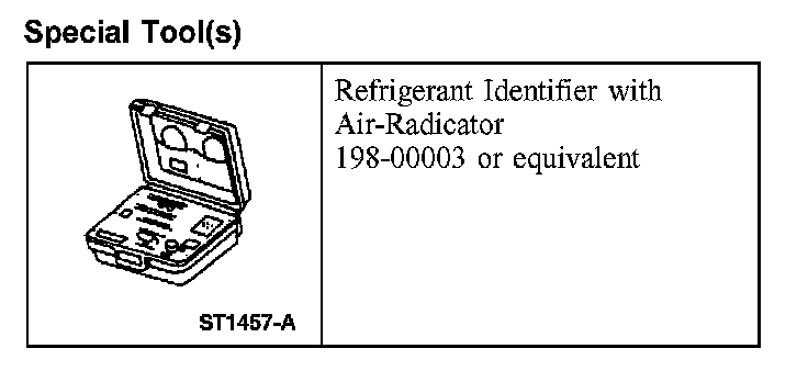 1. NOTE: An A/C refrigerant analyzer must be used to identify gas samples taken directly from the refrigeration system or storage containers prior to recovering or charging the refrigerant system.