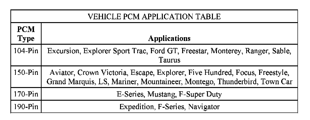 The center of the electronic engine control (EEC) system is a microprocessor called the PCM. The PCM receives input from sensors and other electronic components (switches relays). Based on the information received and programmed into its memory the PCM generates output signals to control various relays solenoids and actuators. There are several different types of PCMs in use for this model year. Refer to the Vehicle PCM Application Table below for PCM types and their applications.
