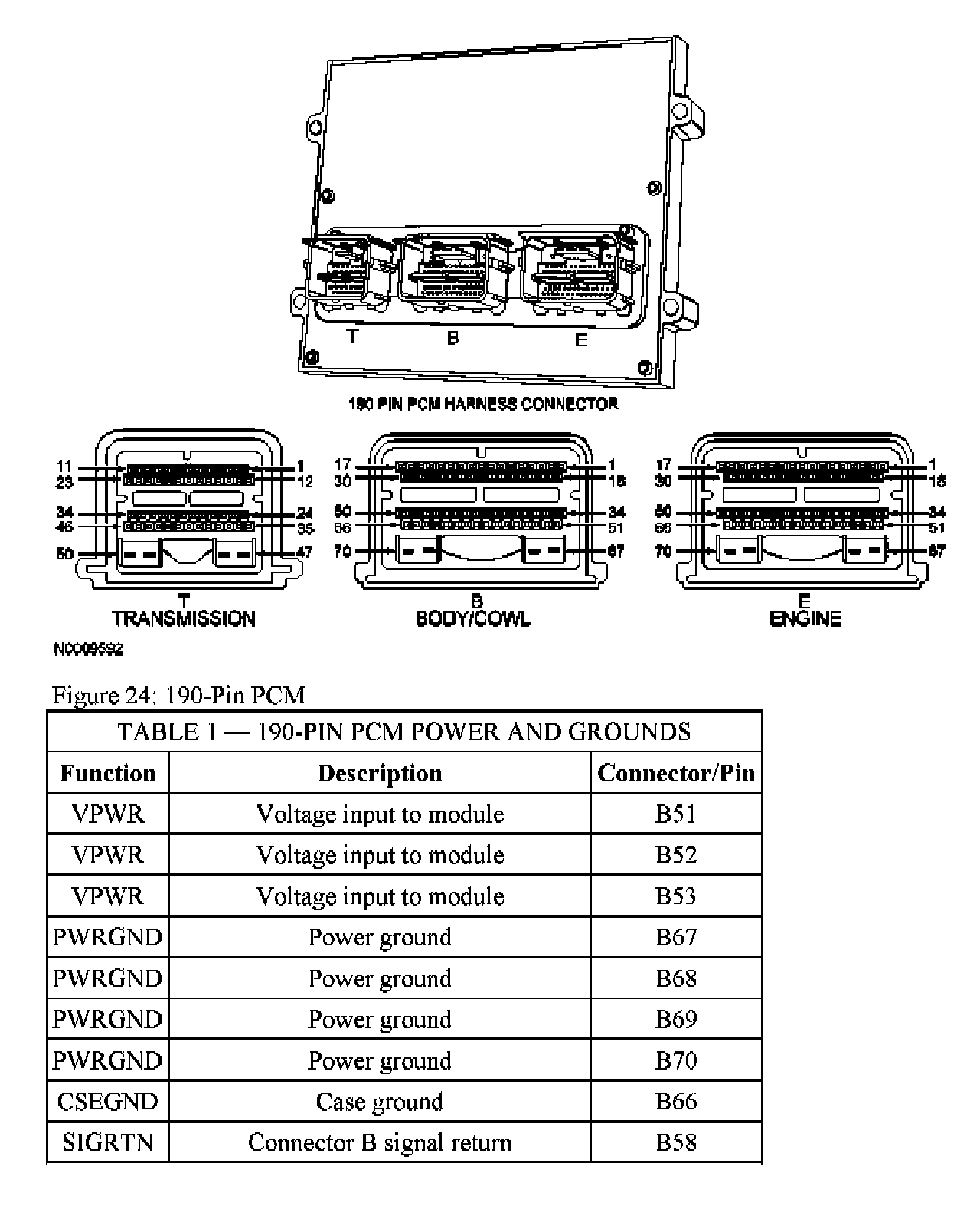 The PWR GND circuit(s) is directly connected to the battery negative terminal. PWR GND provides a return path for the PCM VPWR circuits.