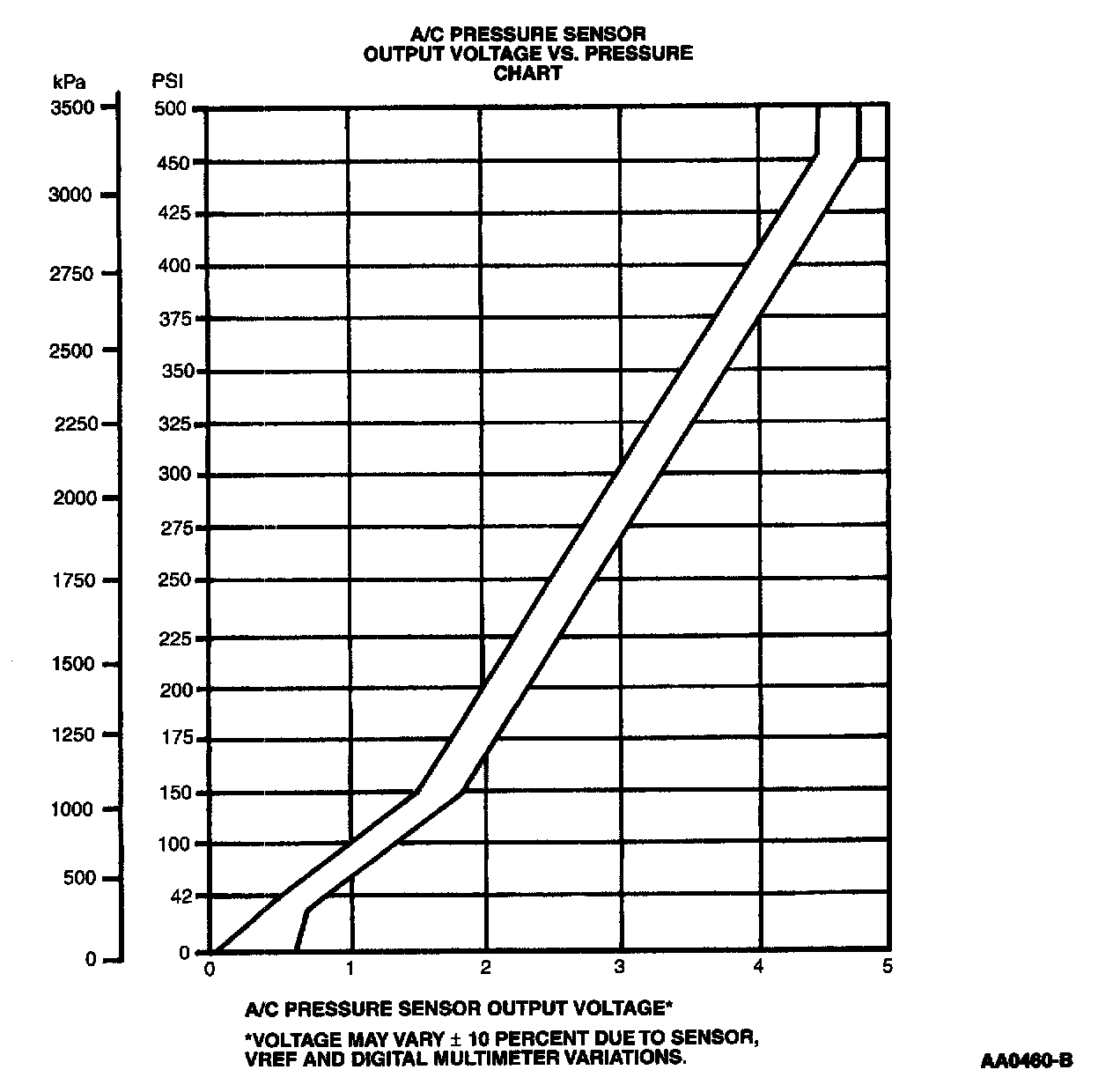 A/C Pressure Sensor Output Voltage Vs. Pressure Chart: