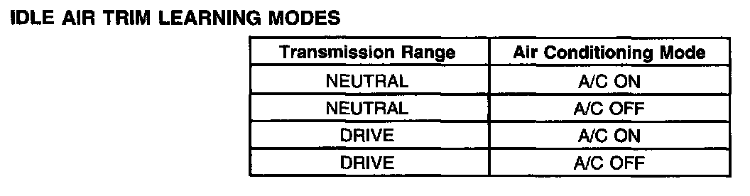 Idle Air Trim Learning Modes: